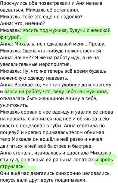 >>6140577 И у всех у них было кое-что общее: если в фандоме, по которому они горели и рисовали, появлялась женщина с характером сложнее, чем мявчащая тряпка, о ней писалось с восхищением. По этой особенности, по такой реакции на сильную героиню (как Хела из Марвел, например), можно было с точностью сказать, что пишет женщина.