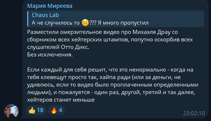 Из тг канала автора заблоченного видео. После такого неиронично хочется накатать на Драву за пропаганду лгбт, чтобы получила в лоб тем же методом, каким пользуется сама.