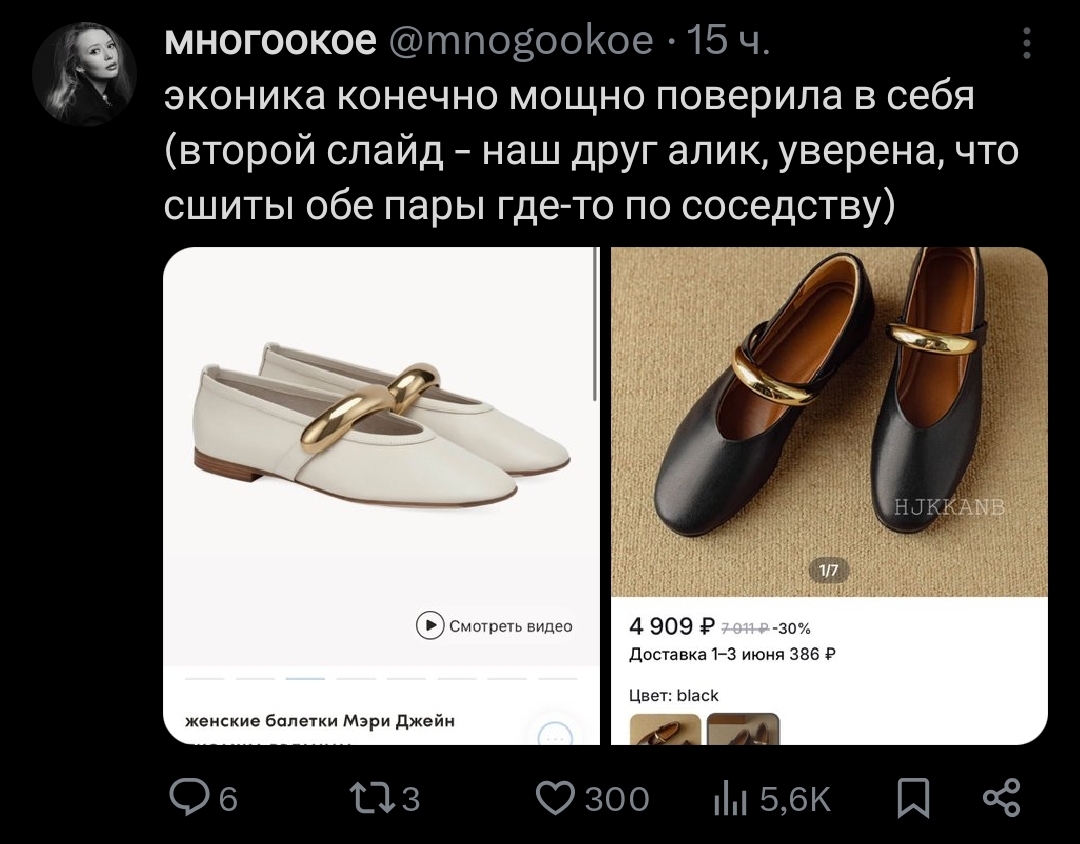 >>6000521 Хуйня эта Эконика. Купила балетки остроносые, они тут же подошва стёрлась(пробовала носить раз 5, лол), очень хуевое качество и пиздецово неудобные и жёсткие. Теперь не ебу куда их девать. Потратила 15к.