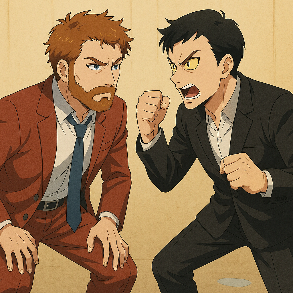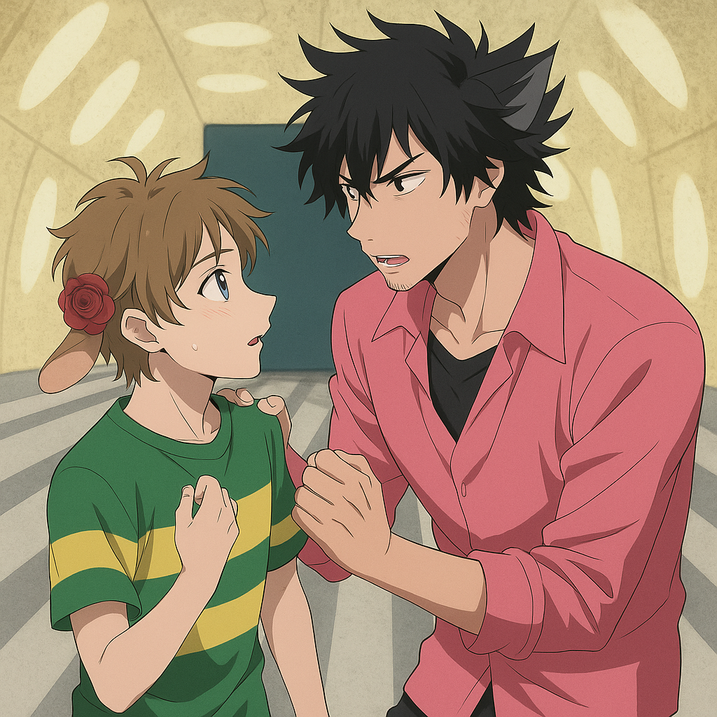 -А, прости. Ненавижу, когда дядьки толкаются -Да, я тоже не люблю -Извини -Господин Умеда, вы ведь довольно сильны, не так ли? А вы так же поступаете и с другими подчиненными? -Что? -Вы же используете свое положение начальника? -О чем ты говоришь? -У вас галстук развязался. Может, пойдем?