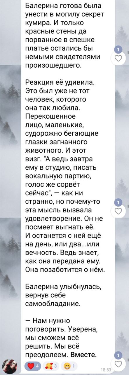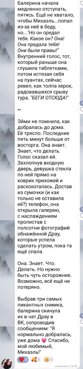 >>6161257 В этом фанфике балерину превратили в яндере, это когда ее блаженное безумие вдруг перетекло в шантаж, где она намерена привязать к себе драву компроматом. Хз, способна ли ирл балерина на такое скотство.