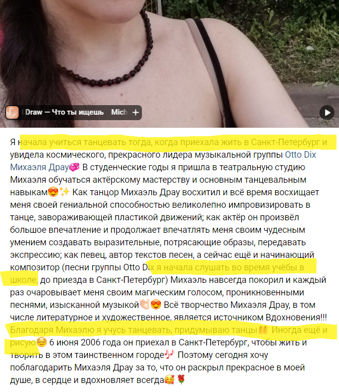 Начала слушать в школке, переехала в питер, потому что драва в питере, стала танцевать балет а вы думали, почему именно балет? да-да потому что драва танцевала балет, стала рисить, потому что драва рисит.