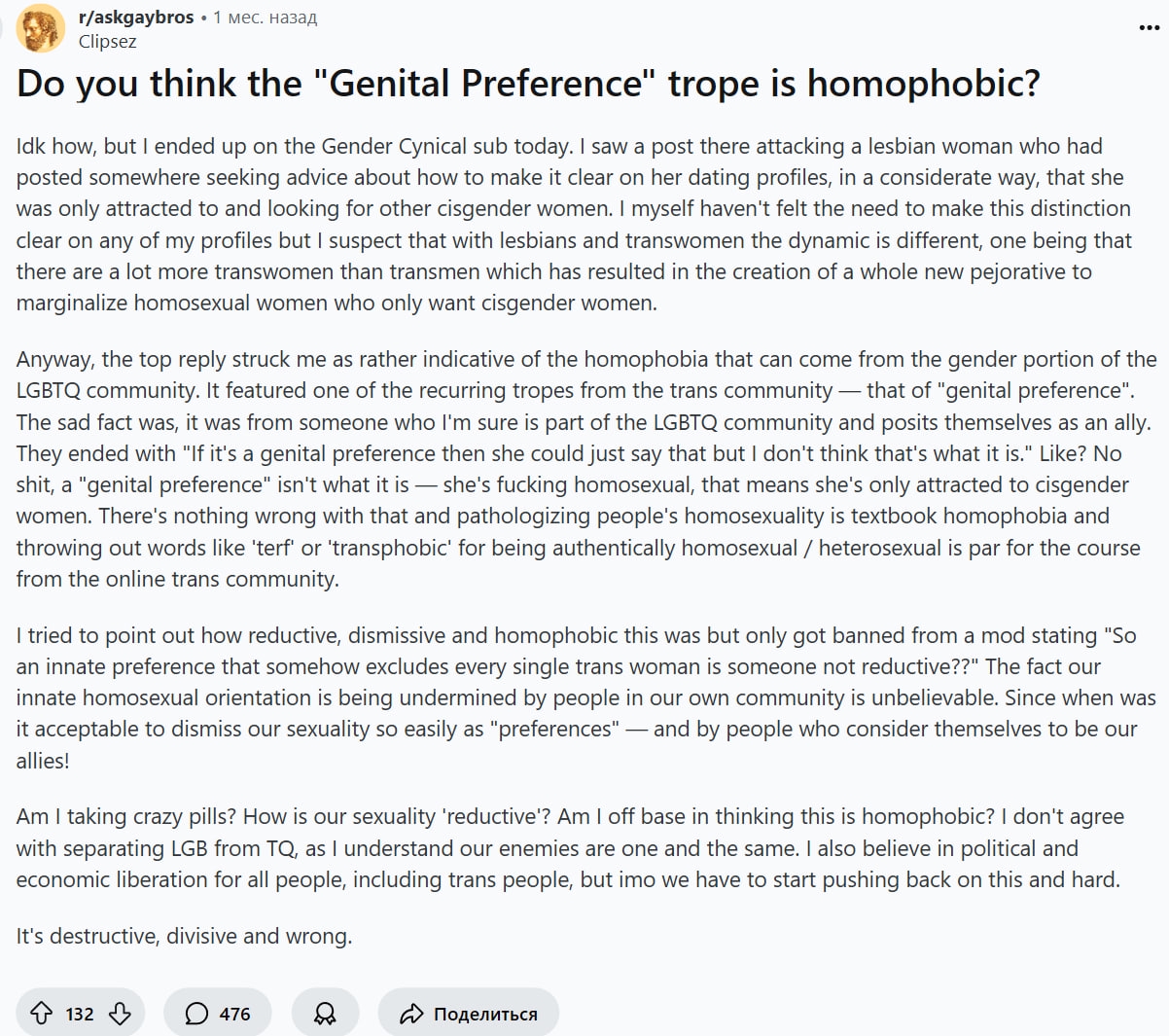 Попытки осветить проблему токсичности и хищничества TQ+ в сообществе цис геев из за цензуры в сообществах для тян и рандомный транс, который открыто ненавидит нас и не репрезентирует женщин