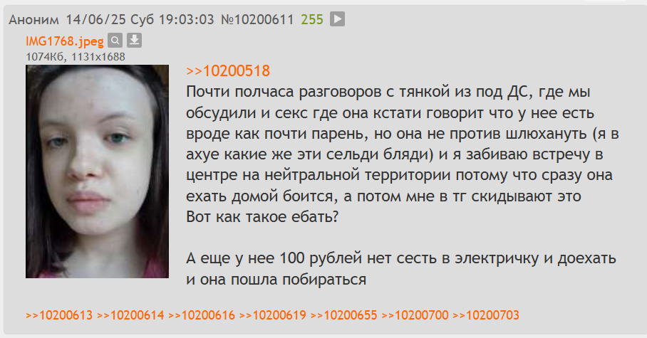 >>6175306 в треде знакомств вообще орейро. в кого ни плюнь, каждый 2/10 150 см 150 кг басист 45 лет и ебёт каждый день 10 новых зумерш 16 лвл. разумеется ни одного пруфа до сих пор никто не предоставил. тупа бля соревнование кто больше баб себе выдумает чтоб другим фантазёрам сраку подпалить но вообще в существование тех кто ебёт всех подряд я верю. у меня бывший такой, прлщик. но там и внеха чеда, то что такому дают это не удивительно. вот когда всраням якобы дают каждый день все подряд, сразу возле подъезда за хуй хватают и в кусты тащат агрессивно ему сосать по яйца заглатывать - ну это хуйня полная конечно