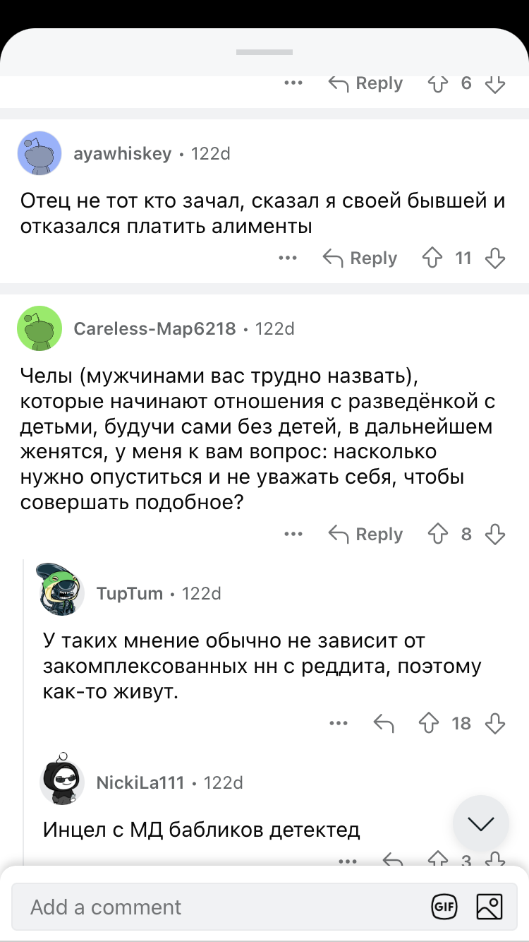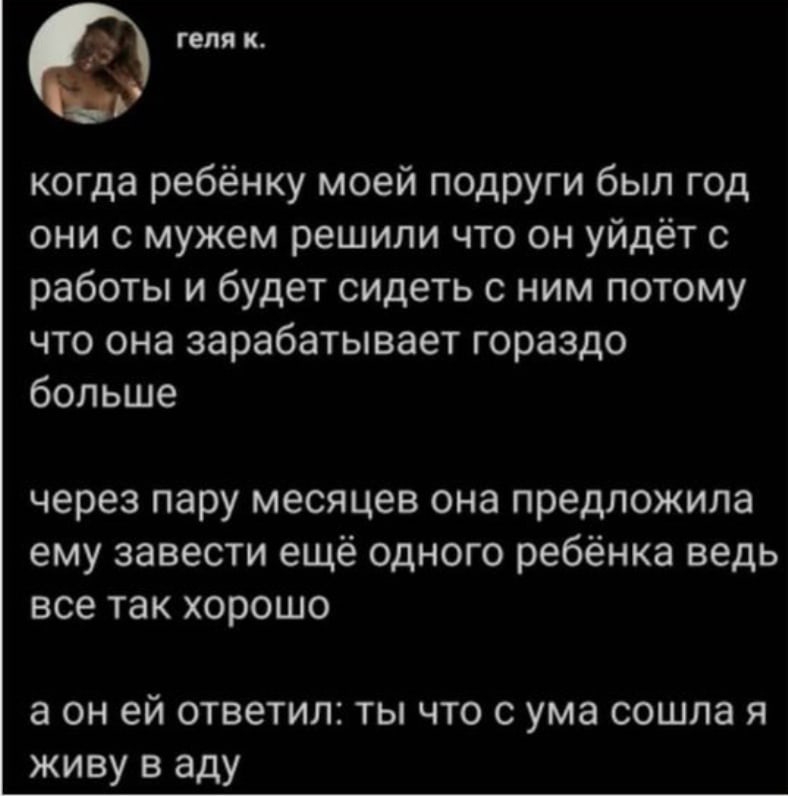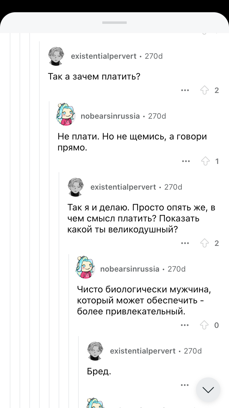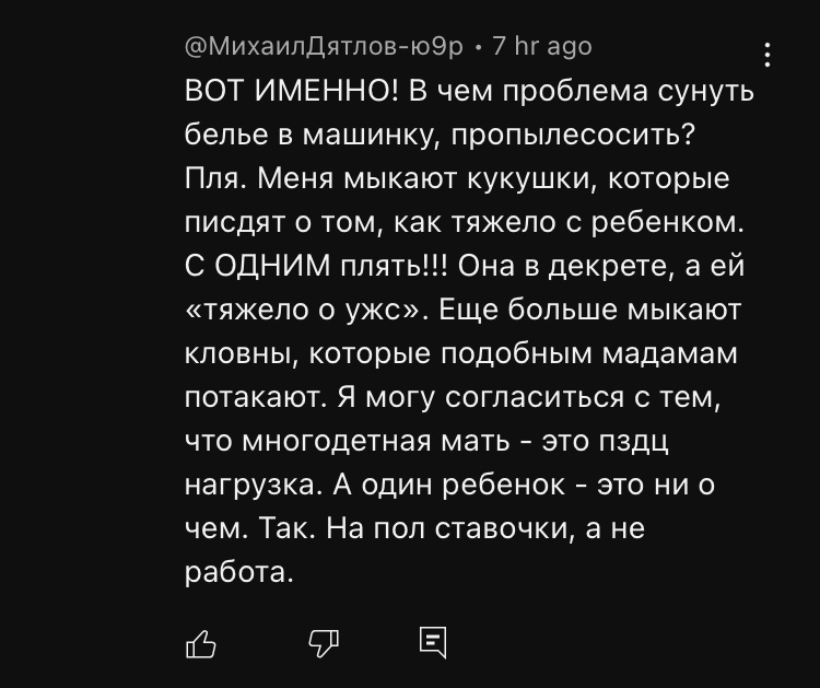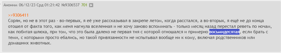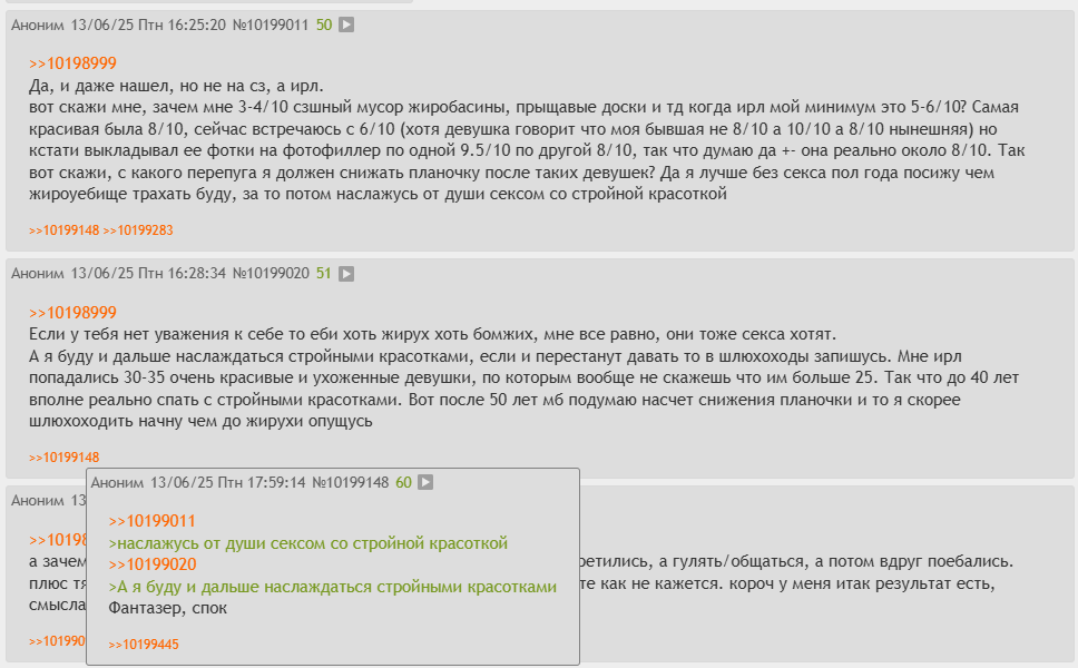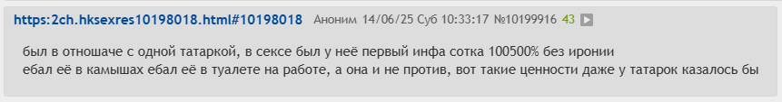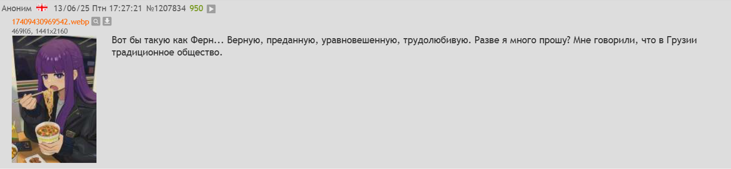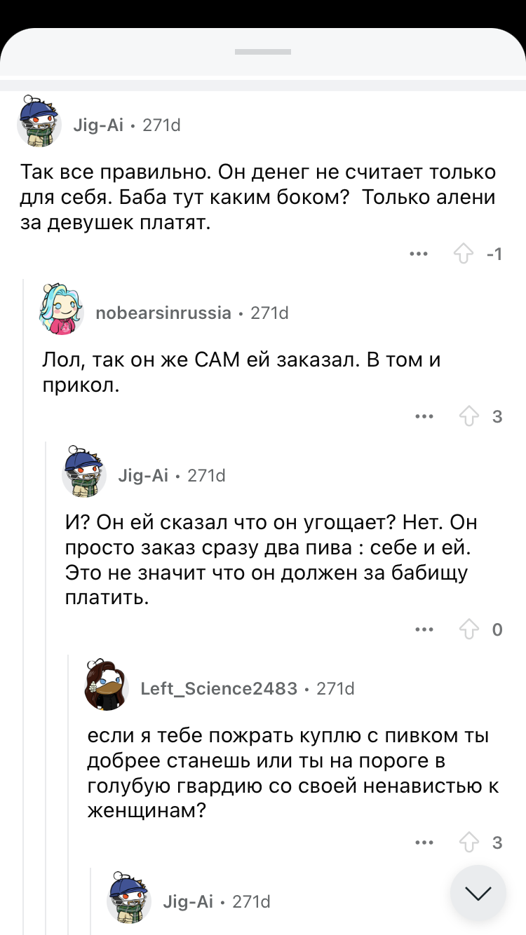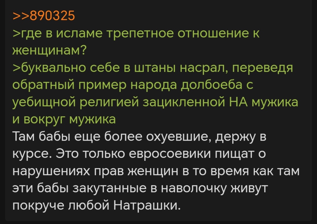 >>6173848 Почему вы в этом треде скидываете какую то безобидную хуйню? В интернете полно по истинне ужасных мизогинных высеров, призывов к насилию над женщинами и т.д. А вы постите как то безобидные анкеты. Вот мой анализ: Требование к возрасту адекватные. Человек ищет равного парнера, а не тупую малолетку . Это хорошо 1. Пункт про растения какая то шиза. Растения полезны для чистоты воздуха в квартире. Ну ладно, тут можно найти компромисс 2 и 3 Хороший пункт. Хороший человек будет любить животных, иметь эмптаию 4. Пункт про источник дохода тоже хороший. Плохо, когда женщина зависима от мужика полностью и несомостоятельна. Это даёт мужику власть над тян, она становится от него зависима, ей придется терпеть от него всякое говно, потому что без него умрёт с голоду на морозе. 5. Пункт про распределение обязанностей адекватен. Каждый сам за собой убирает, каждый работает. Я часто встречала мнение, что тян должна и работать и ещё обслуживать мужика в быту. И многие нормиски это делают. Вот в чем проблема 6. Мало инфы чтобы сделать вывод о его полит взглядах, но звучит сомнительно 7. Хороший пункт, он ищет себе не просто дырку для ебли, ему важна личность тян и наличие общих интересов Все остальные пункты тоже Грин флаги по этой же причине Пункт про внешность. Я думаю это тоже хорошо, когда тян не использует кучу адаптивок и принимает свою естественную внешность. Не гонется за каким то патриархалным стандартном надувного бимбоунитаза 10. Пункт про одежду эгоистичный и собственннический с его стороны. 11. Нейтральный пункт. Некоторым тян просто нравится косплей