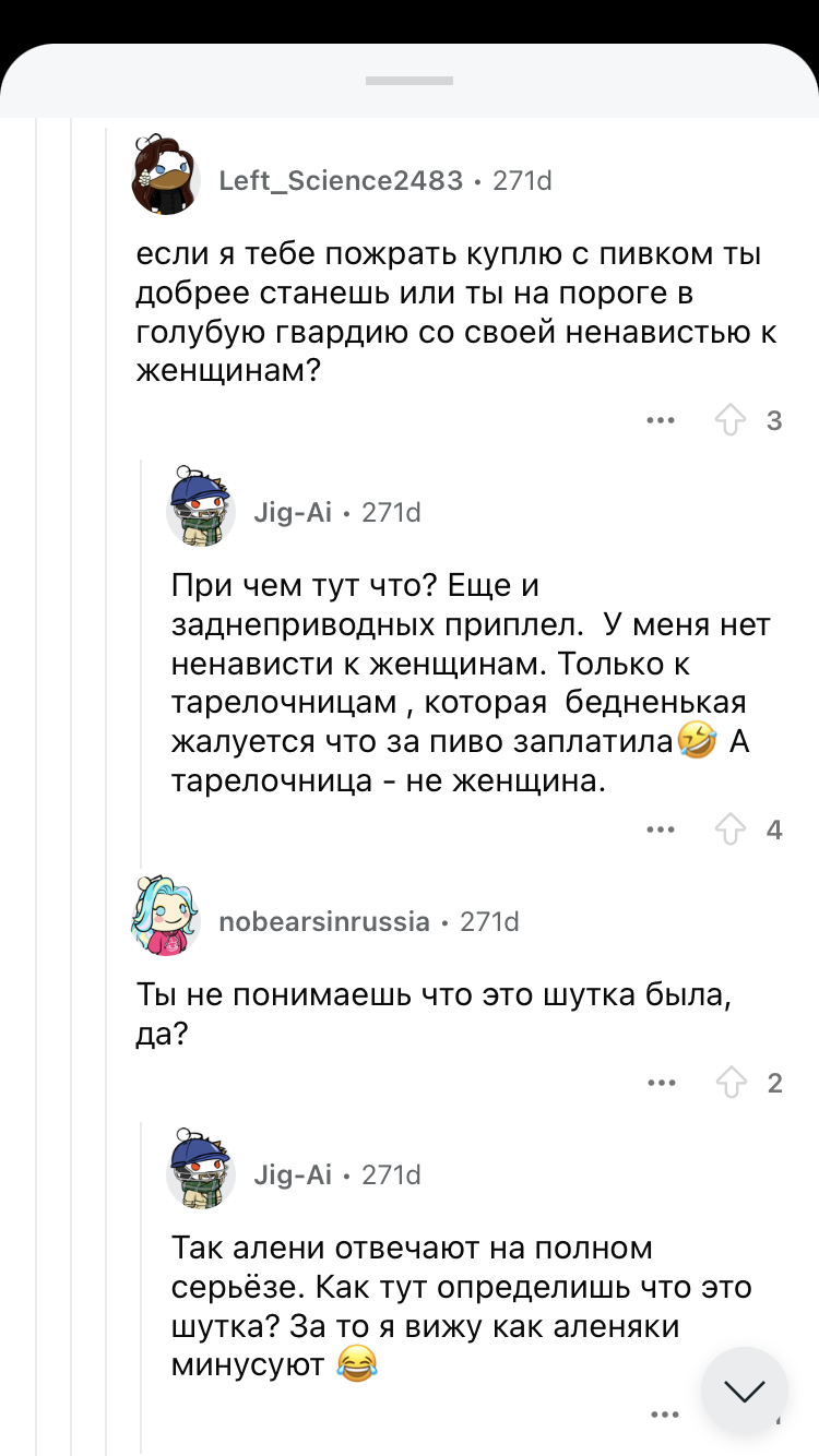 Постим скрины людоедских женоненавистнических высеров с двача и других платформ Прошлый тред: https://2ch.hk/dev/res/6111505.html#6111505 Да, картинки беспонтовые но это пока на разогрев