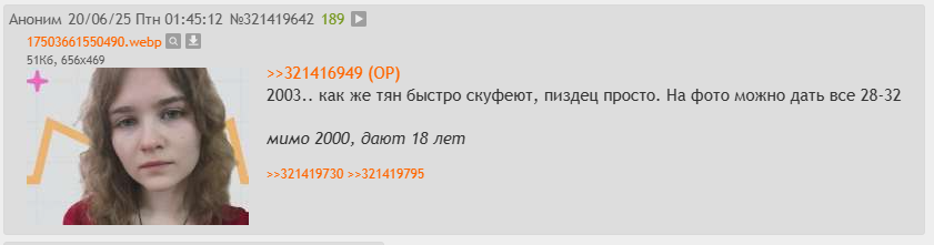 Про возраст высер не читала. Повторю: над чушлом шутить весело, потому что оно стареет как говно, в отличие от женщин. Вот вся логика.