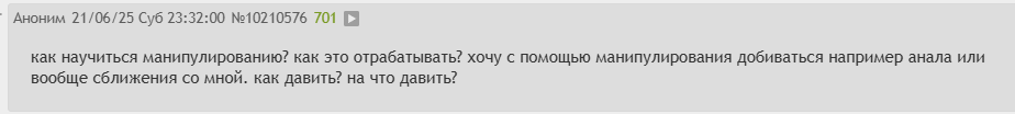 >Я сама то отыгрываю роль лол я так же делала раньше, и в мужском роде писала, и от лица инселла тож. но это года 3-4 назад было. помню тоже тут как-то давно вбросила пост, который на 70% пиздёж, а его кто-то заскринил и носился с этим скрином лол