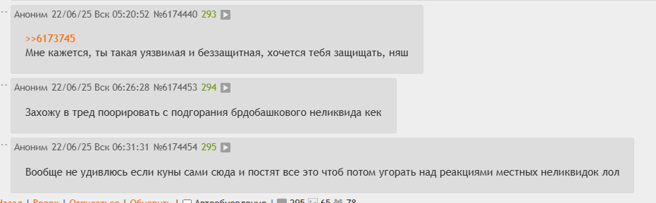 >>6175315 >но пасты всё равно сраку рвут да Вот именно. Наверно я даже сама изредка ловлюсь, лол. Но приятно когда удается получить знатный разрыв пердаков. Однажды я в сексаче сыграла чушка, который без смазки занялся со своей тянкой аналом и растянул ей анус, и типа спрашиваю от лица чушка "ну что, бросать ее? а то кайфа уже нет" Там сразу конечно постинг поднялся, кто что пишет, советы дают, а сисы наверняка подгорели и начали оскорбления писать (сисы, простите меня дуру), а я веселюсь, пхахахпх