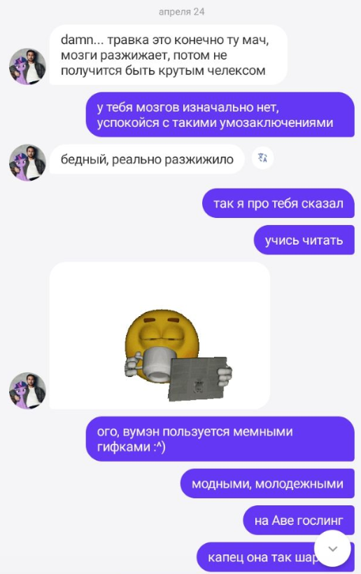 >>6168890 Да как-то похуй чё он там, в сортах говноприёмчиков маняпуляторских от чуханидз не разбираюсь. Не может нормально общаться, а не заходить со старту с доёбок и оскорблений - до свидания.