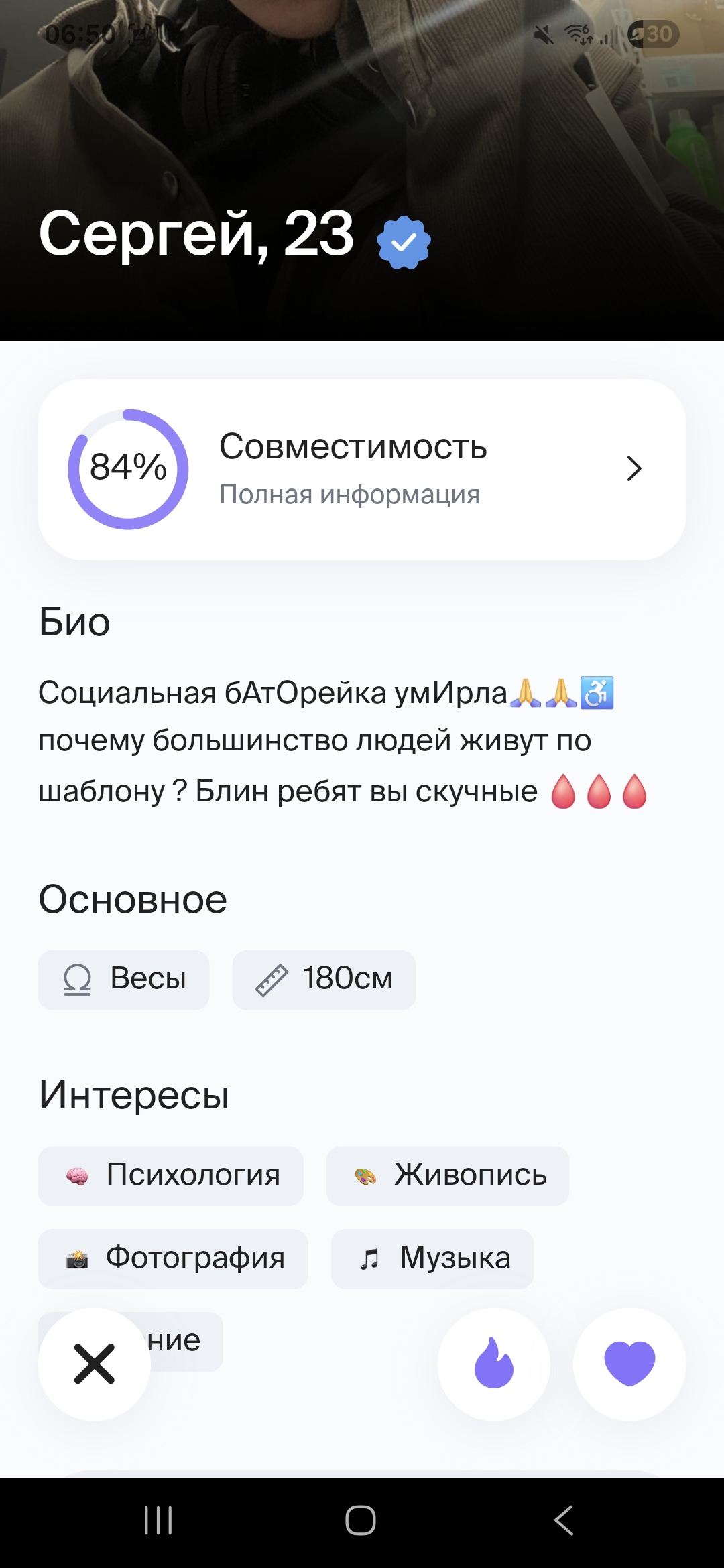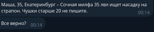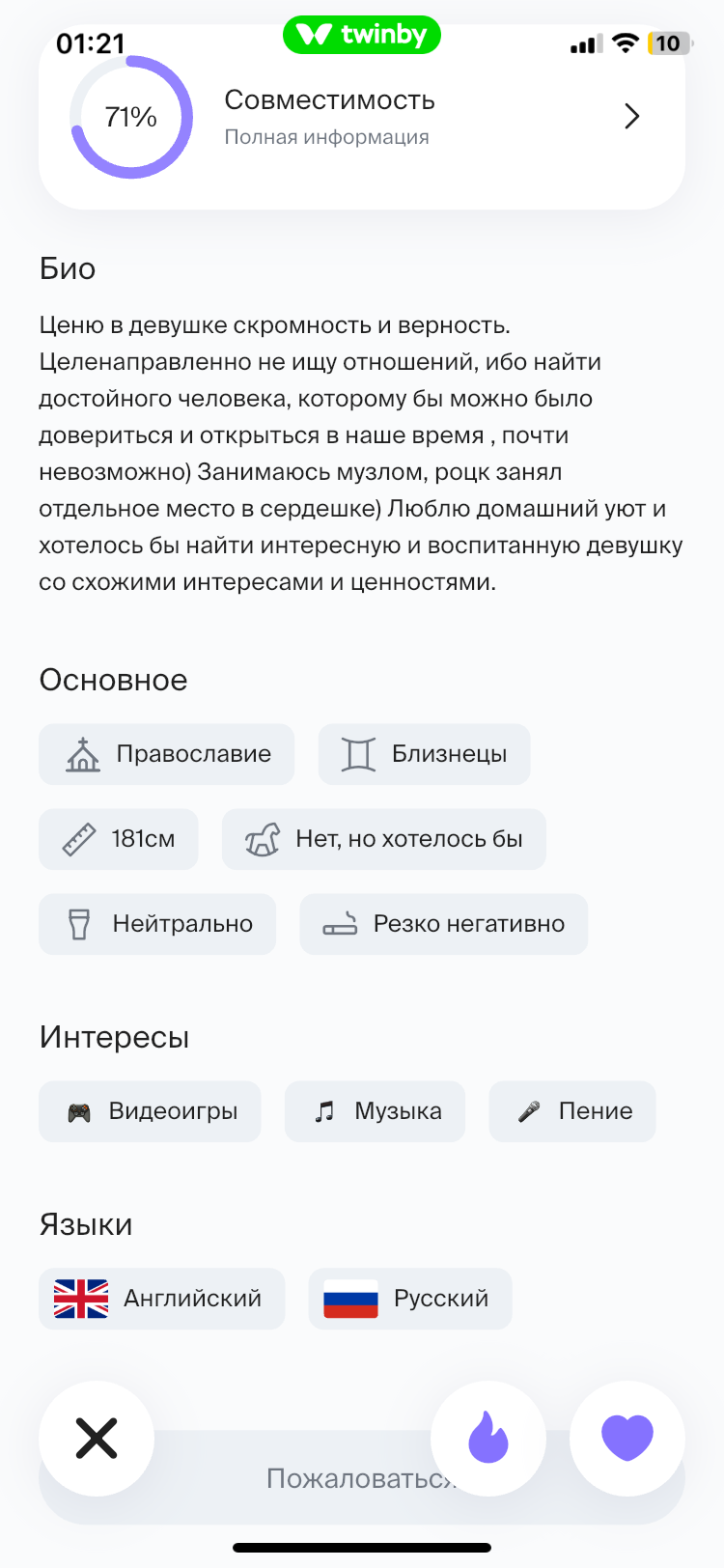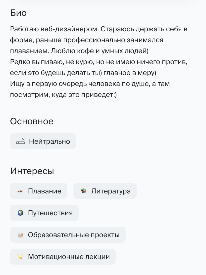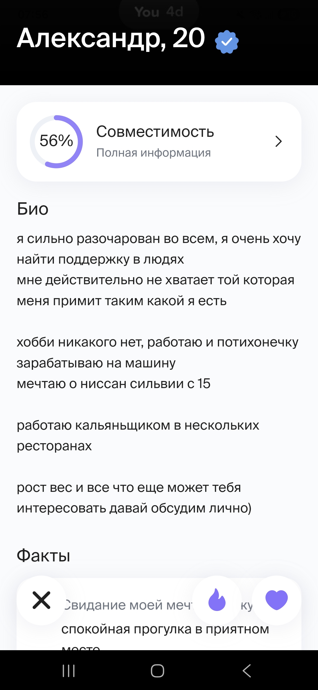 Просто пиздец АХХАХАХХА "я сильно разочарован в людях" поздравляю, мне похуй "мне не хватает поддержки" иди к ПЛАТНОМУ психологу или всё-таки хочется найти бесплатную девушку, которая будет эмоционально обслуживать?????? "меня примИт таким какой я есть" а мамы уже не хватает да, это чисто вот хочу маму вторую Свидание моей мечты ПРОГУЛКА насколько лохом (или нищим) надо быть чтобы ЭТО было мечтой Чел очевидно карлан какой "рост вес ОБСУДИМ ЛИЧНО"
