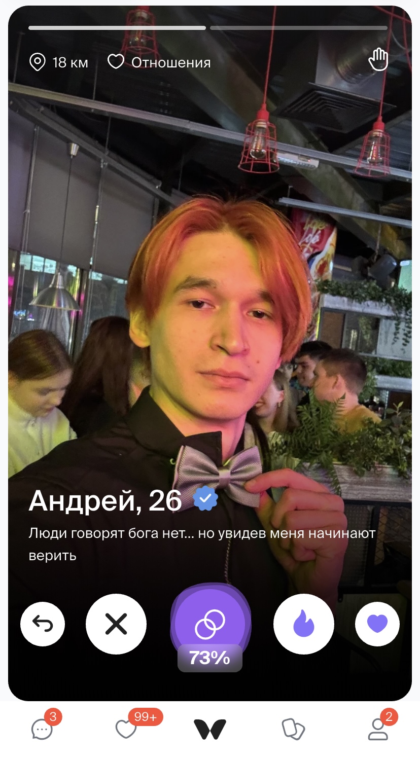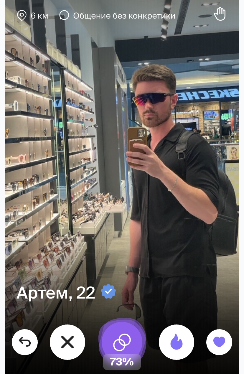 >>6202855 знаю что в пьюре тоже можно выбрать такие плашки, но это приложение известно как поиск поёба онли, так что даже если выберешь отношения - всё равно будет выдавать блядунов хитрожопых которые поставили ищу отношения а сами ищут поёб