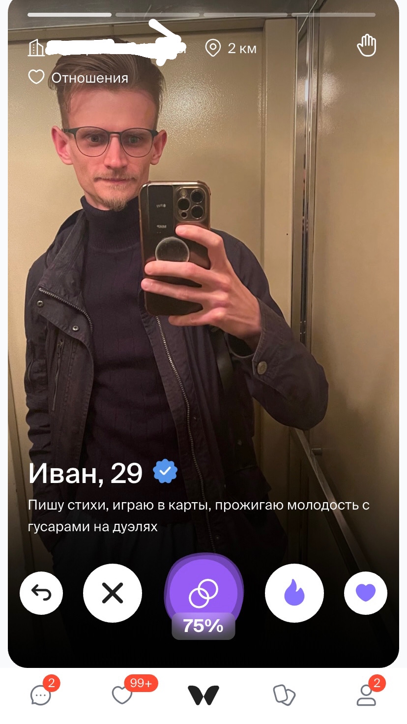 Помню мне фантазёр попался, который рассказывал, как он под пивасик/винишко переебал типа 100+ тян за полгода. По фоткам няшный конечно (впрочем может и не его), но чёт прям хуй знает, явно число СИЛЬНО преувеличил. и вообще никто в моём городе не ебал больше баб, чем мой бывший, лул Ещё какие-то фантазии написал, не помню уже, в общем про то что на него вешаются все кто его только видит. Меня тоже зазывал посидеть под винишко, я слилась типа не, наутро он снёс диалог для двоих. Я думала такие фантазёры только на дваче в тредах знакомств сидят. А даже если там реально по одной тян в день, это блять откуда столько времени и сил со столькими знакомиться, чё прям вот каждая соглашается? Место действия не дс. Я специально делала как-то раз фэк мужской в дв, так там по ощущениям ну может 150 тянских анкет были, дальше начало уже из области подсовывать, то есть банально нет даже столько народа, чтоб пусть даже хотя бы каждая вторая-третья соглашалась на преттика, а тем более ехать прямщас ебаться с первым встречным.