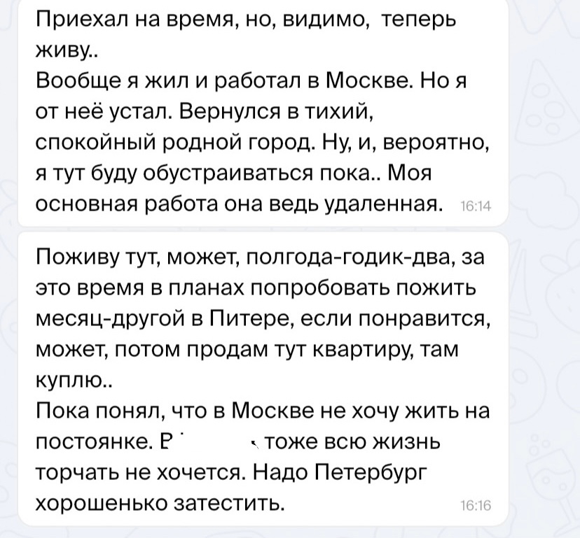 >>6203473 Я написала привет, он ответил, но я больше ничего не писала. Просто испугалась, у него там судя по тгк была активная жизнь, бимбо подруги, а я ваще не такая, со мной ему было бы тяжело. Не, я когда привыкаю к людям я тоже очень активная, веселая и общительная, но на начальных этапах я зажатая омежка