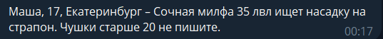 >>6203228 Общайся в самом приложении, нах тебе дикпики и голосовухи от чушков? Встретились и если еще хочется общаться можно в тг. Или создай пустой акк в мессенджере под это дело. >>6203234 >Только расстроилась из-за контингента в своем городе Попробуй уральские ебеня с населением <200к, нигде больше такого парада уродов не встречала. Причем там и вахтовики есть, т.е. эти уроды еще и стекаются со всей страны, прям отборные помои.