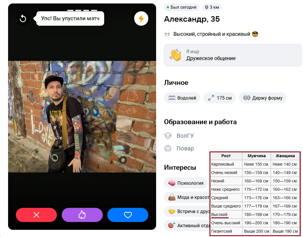 У меня бывший 197 см, всякое бывает. По фотке сложно сказать, но как-то по пропорциям головы, плечей и шеи чувак выглядит достаточно крупным, может и не пиздит