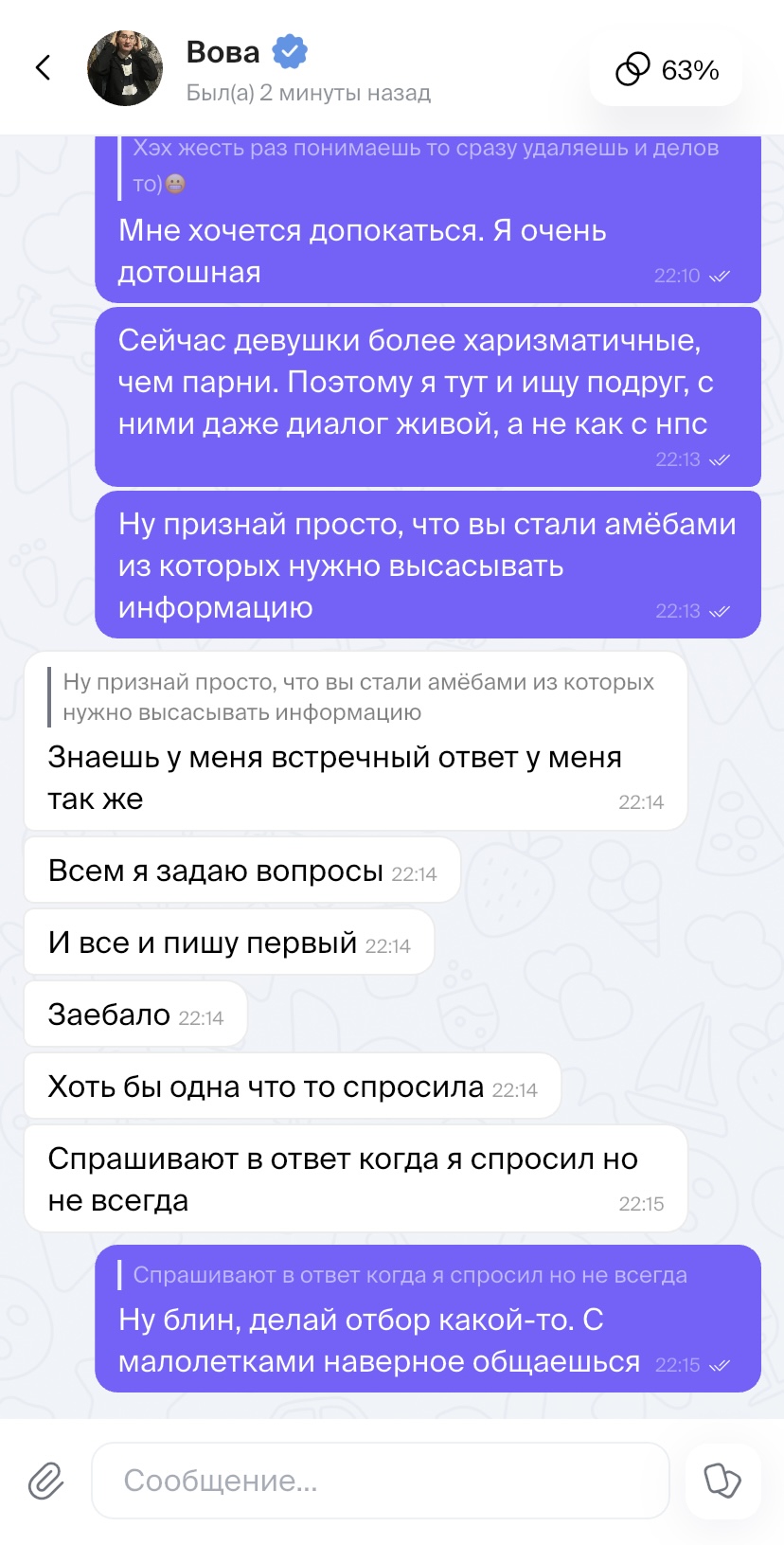 Ну мне в Вове нравится, что он не сливается от вопросов