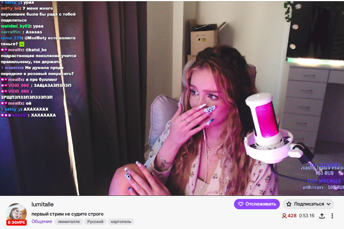 Шлюми запустила. Квартира не Поехина офк. Рассказывает, что розовые пряди это хуйня, не красиво и пачканье волос. В огород Терпидлер походу, лол. Ну тварина...)))) Забавно, что даже после того, как засветила ебало на Вк фесте с картоплей. Сами Вк публиковали их вместе, тт набрали норм просмотров, ну и после долго отсутствия. Онлайн все-равно 400. И ещё опустится по-любому. Мдэ. сТриМерШа.