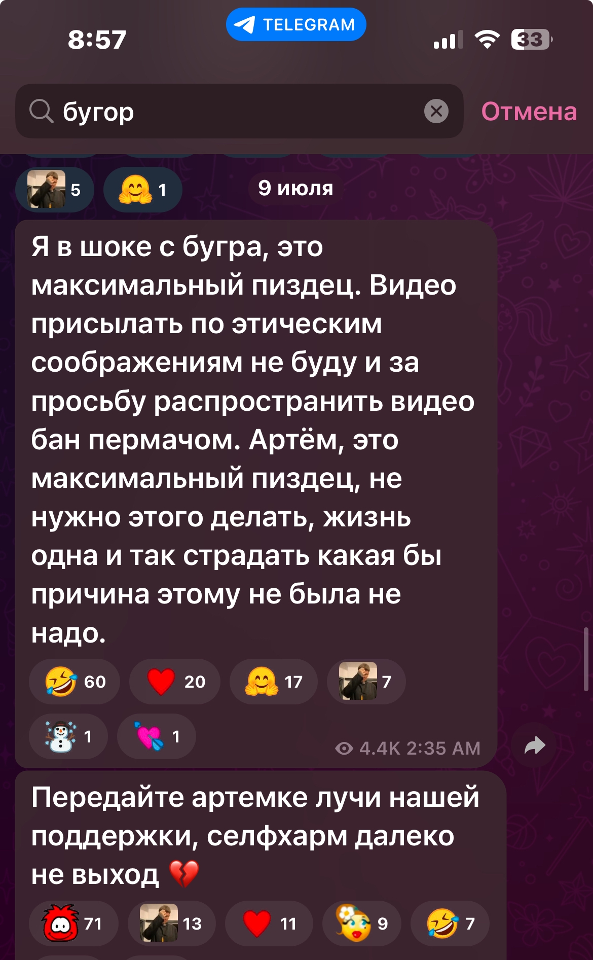 >>6223125 ахуй, я думала там очередная аля нейронка или грим, а он реально резал что-то. так ещё и тян свою обвинил, которая вроде как ребенок совсем, даж школу не окончила