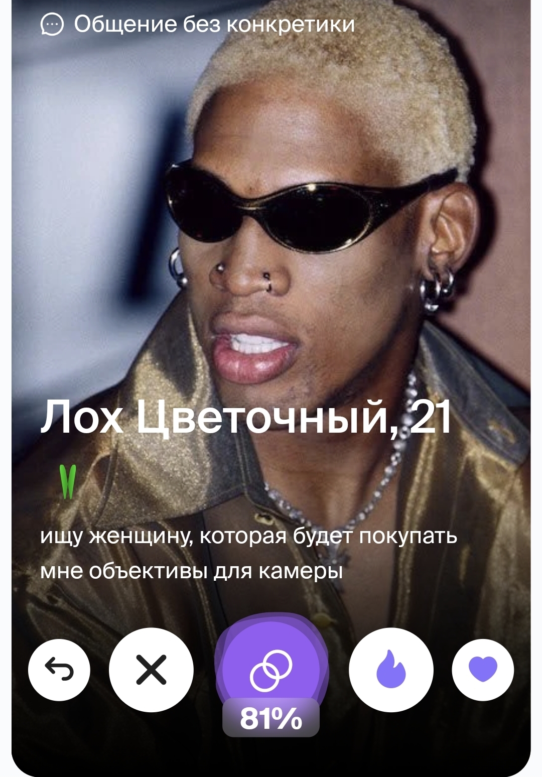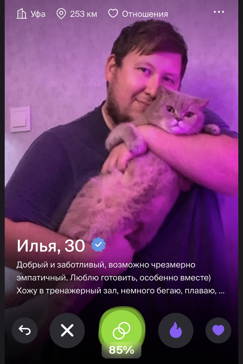 >>6220803 Чечик с фото в итоге заигнорен. Он откликнулся на анкету, где русским по белому было про то, что я не хочу проводить совместное время исключительно дома. В итоге у него и деняк нет, и погода в дс2 неподходящая, а ещё луна не в той фазе небось. Тьфу
