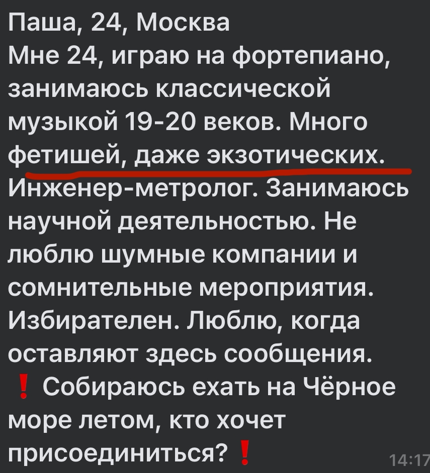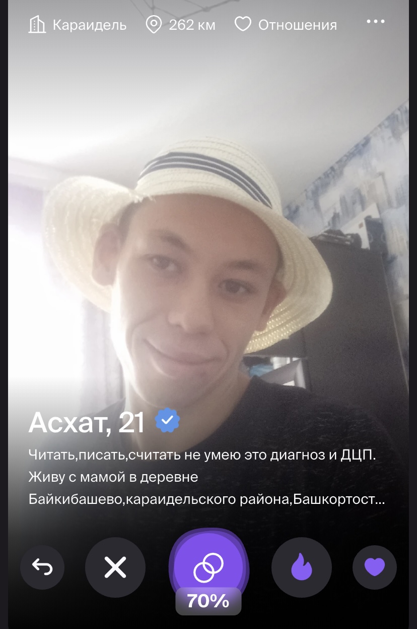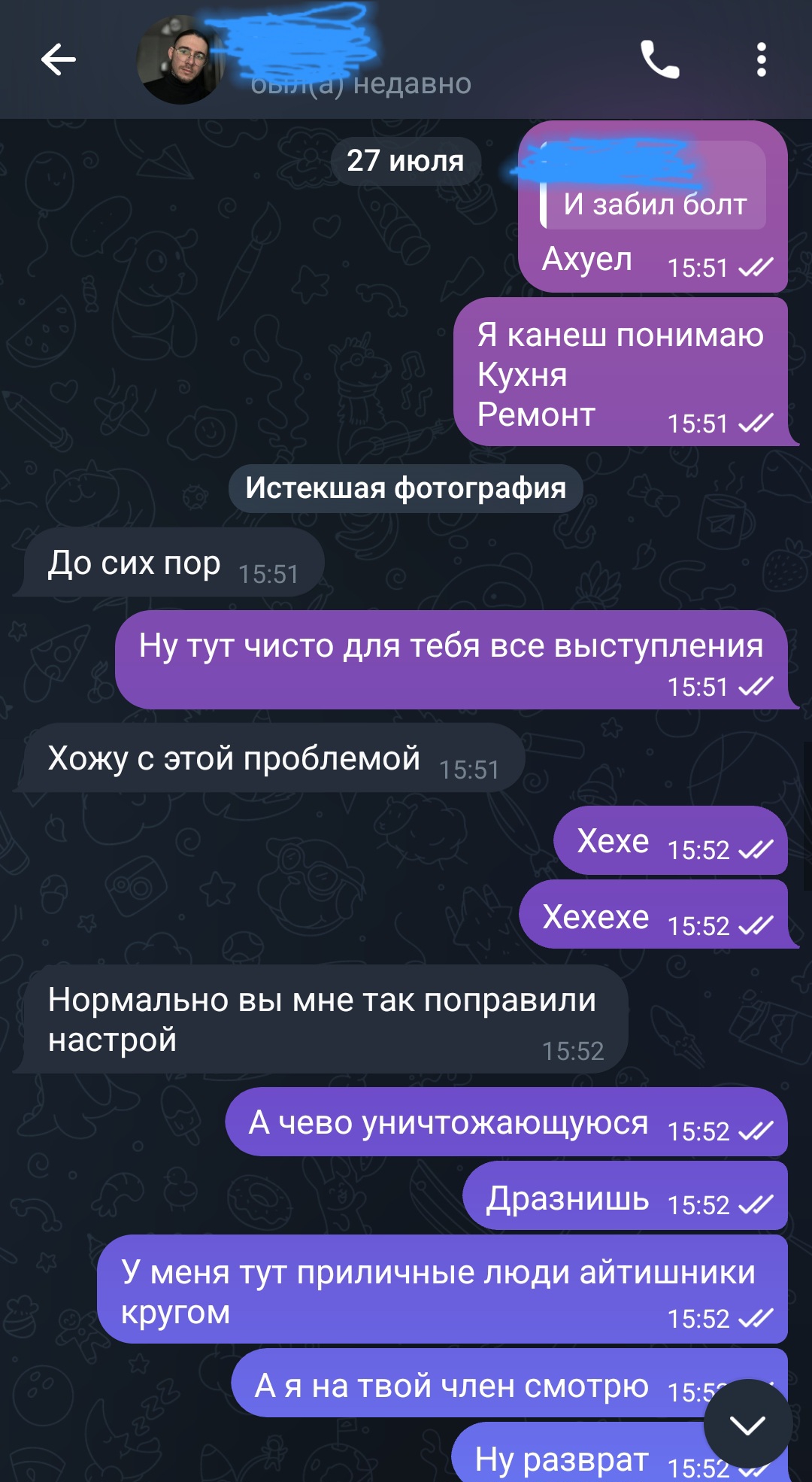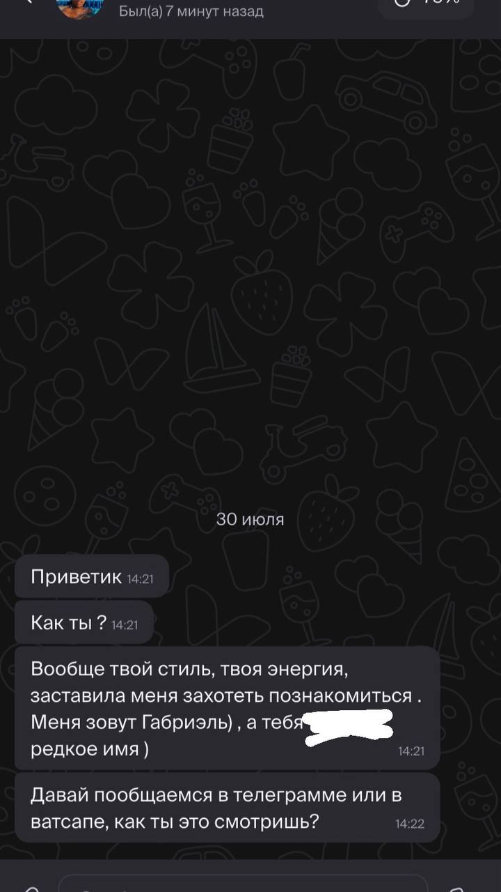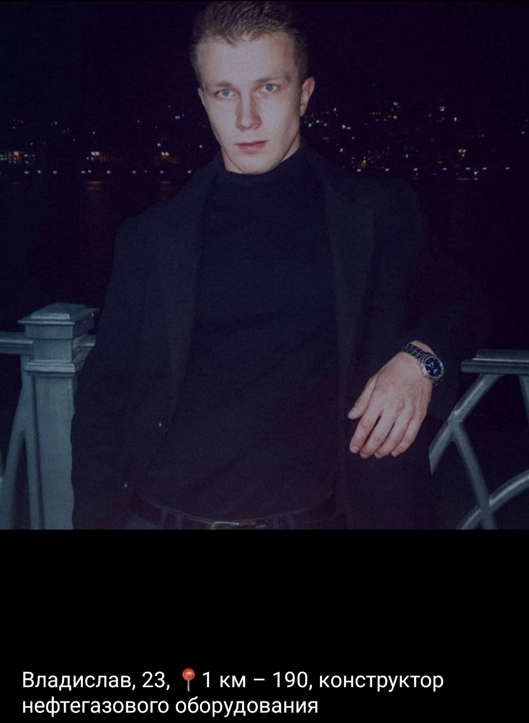 Александыр в соце откликнулся на мою анкету. Я удивилась, какой он симпатишный, даже затребовала кружок в тг. Мы 3 дня миленько чатились, а потом... Ну извините, у меня не стоит на такое! Я ездила на свидания в парк в пригород, я гуляла в дождь, и кому надо, тот находит время и возможности