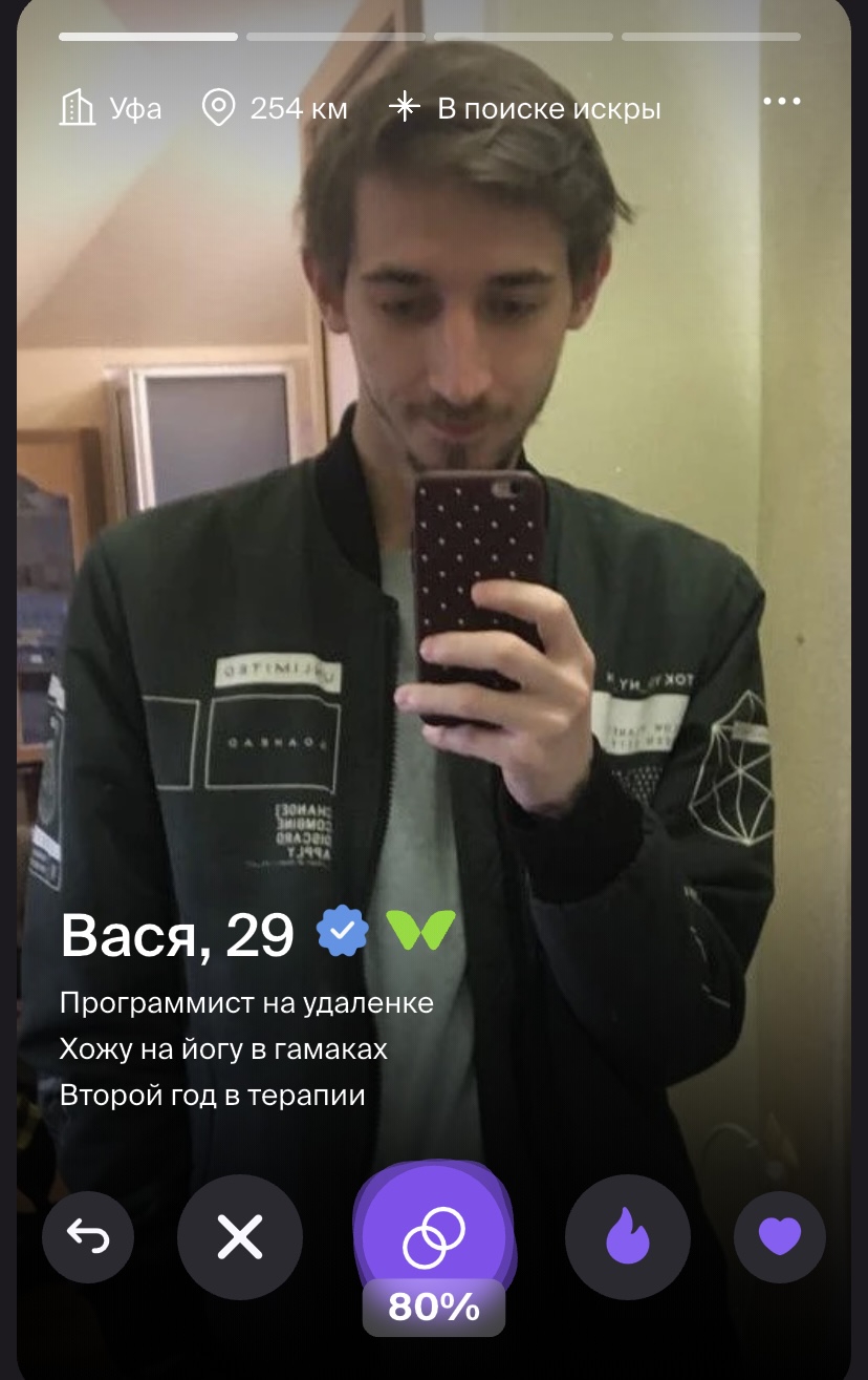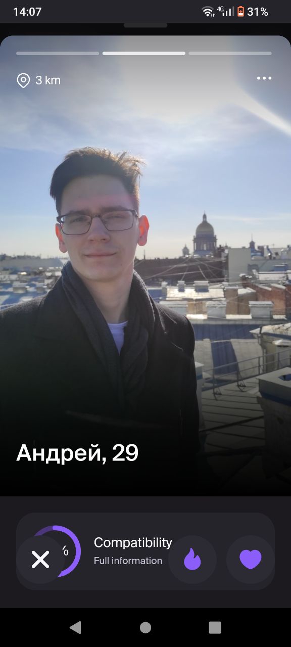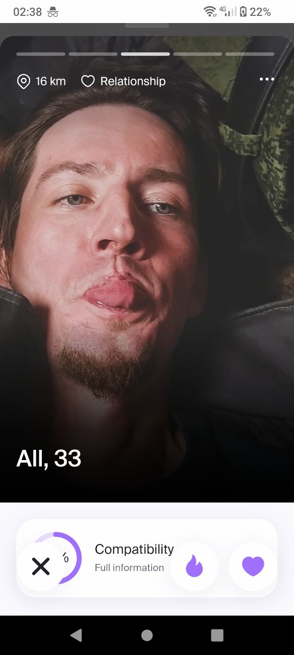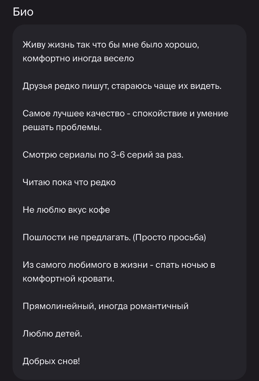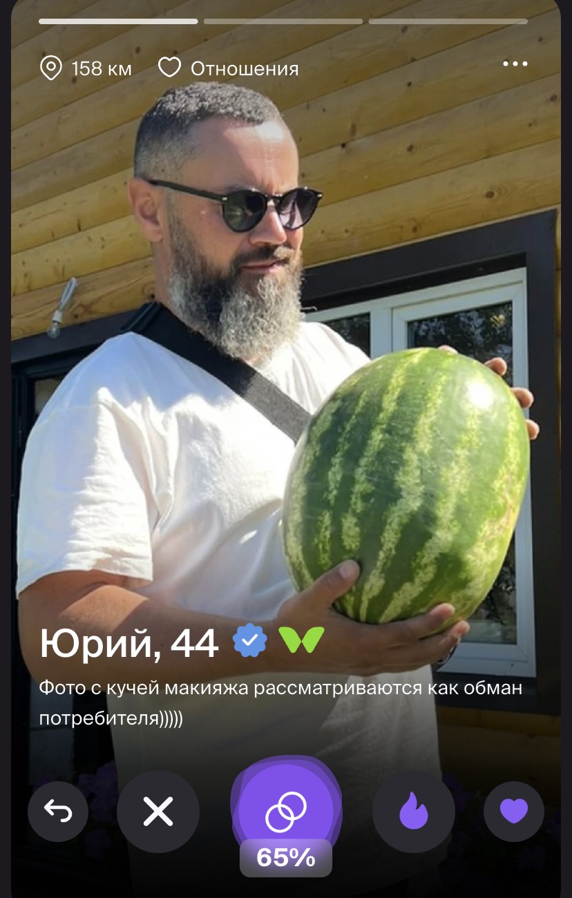 Александыр в соце откликнулся на мою анкету. Я удивилась, какой он симпатишный, даже затребовала кружок в тг. Мы 3 дня миленько чатились, а потом... Ну извините, у меня не стоит на такое! Я ездила на свидания в парк в пригород, я гуляла в дождь, и кому надо, тот находит время и возможности