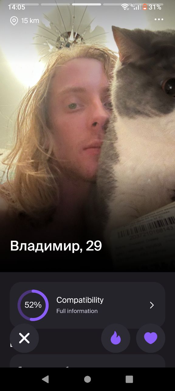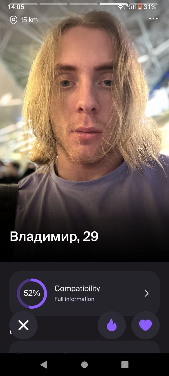 >>6220956 > Достаточно просто ходить по свиданкам, получать комплиментики, ухаживания, цветочки и т.п. и выбирать того, который тебе действительно понравится > Я же говорю, мужике не настолько тупые, они знают