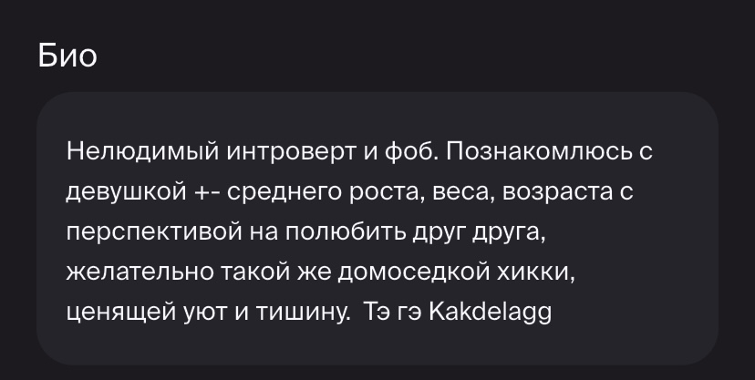 >>6220218 >>6219861 Конкретно я писала, что 5/10 мышара, оцениваю себя трезво, тк есть видимая ассиметрия лица и недовес. Лайкнул меня, на след день списались, оказалось что звал на кофе проеб и увидел во мне доступную, кинула в ЧС. Эххх я уже размечталась, как буду называть наших детей...