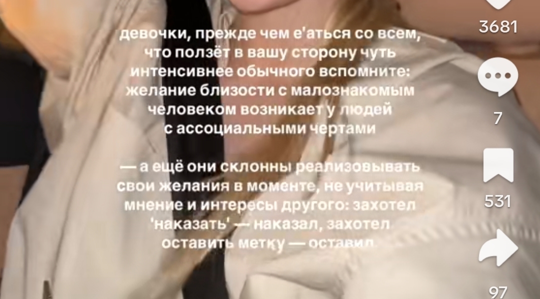 Жанулька–тян, я в принципе рада за тебя. И наверное в целом этот поступок из серии "жизнь это что сейчас", но за свои например инсайты поясню. Во первых это опасно, уединяться с плохо знакомым человеком не в общественном месте. Во вторых опасно для здоровья, ибо когда такая страсть о многом забывают плюс всегда возможна специальная подстава под заражение и/или беременность (см. во первых). В третьих опасно из-за "тихой" кражи (незаметно и без насилия) личных данных (паспорт, копии, слепки, карты и т.д.) + возможность скрытой съёмки без твоего согласия (см. во первых). Да, страсть, либидо всё это прекрасно, но в слишком сложном мире мы живём.