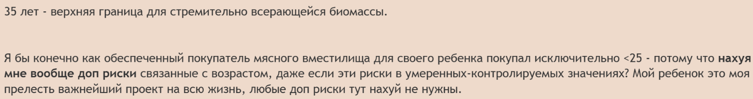 Короче да, последние пол года живу с мечтой найти мужа-кабанчика, готового меня содержать, чтобы вообще забыть про работу нахрен. Бездельничать дома не хочу, готова помогать ему по бизнесу / решать весь головняк по дому. Меня бы устроил 6/10 не сильно оскуфевший 30-летний мужик, правда я вообще хз как подступиться к фильтрации-знакомству с такими мужиками, на них ведь не написан доход и желание взять 27-летнюю тян на иждивение. Внешка у меня миловидная, но далеко не топовая, наверное по хуе-метрикам это где-то 6.5/10, наверное если убрать рабочий заеб и фигачить в зале смогу дотянуть до 7. При этом я лояльная, умею вкладываться в отношения и договороспособная. Самый ставящий палки в колёса фактор, из-за которого я решительно не могу взяться за поиски - есть ненулевой шанс что я бесплодная. А ну и еще конечно факторы, типа того что общение с додиками на СЗ невыносимо, там реально биомусор какой-то сидит подрывающий веру в мужиков.