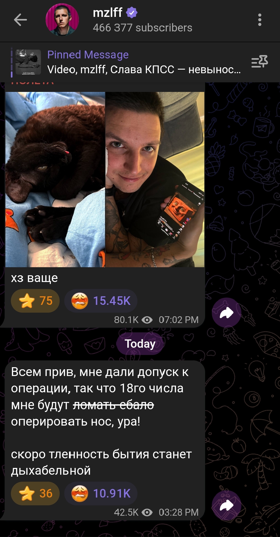 Кто-нибудь следит за Кишлаком или его тян? Они расстались? Зашла аккаунт почекать. Букетики постит от которых вайб, что сама себе купила (не знаю почему, но так кажется), животные на месте, но квартира другая, кровать на одноместная, Тиктоки и фото только из одной комнаты. Видео с концертов из зрительного зала, а раньше были с боков. Ещё тикток был странный после концерта его, как будто она там его поймала, а не они вместе