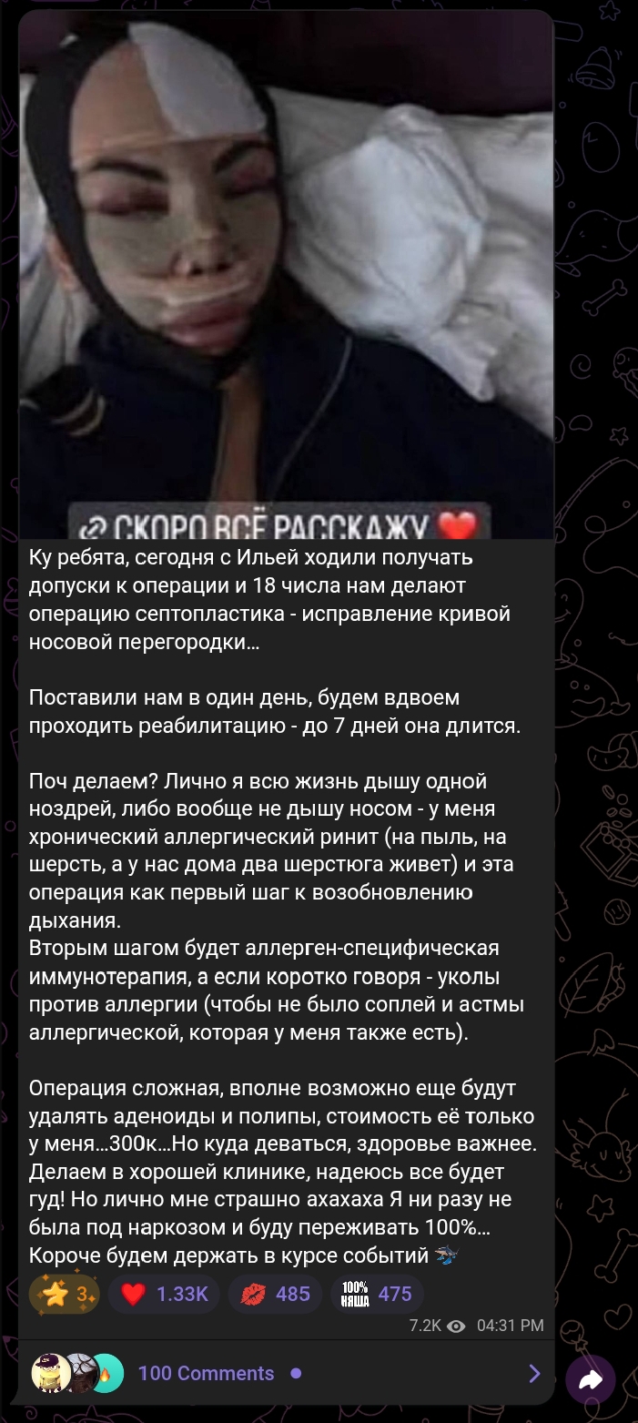 сюда кидали видео карамбейби про депрессию, рпп и прочие проблемы, обсуждали уже. но. она, вроде как, окончательно решила лечиться от всего и сразу, рппшила туда же, но, кмк, она продолжается у неё. вес не набрала совершенно, а лицо отекшее, как после мочегонных. видимо, рппшизка один раз действительно рппшизка навсегда. тем более когда шиза продолжается уже под десятку лет.