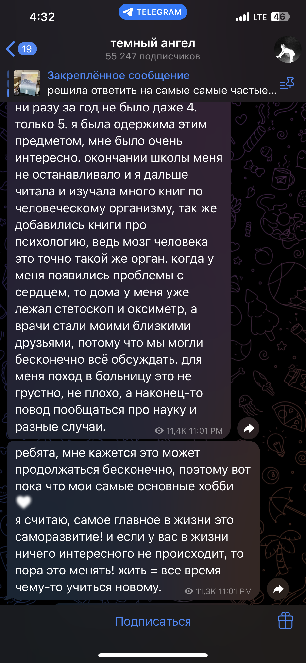 >>6242773 у них и друзья не общие что неудивительно, мало какая 22-летняя нормиска захочет общаться с 30-летними кунами и бухать-торчать, как делает сукка в «тусовку» влиться не пытается, как делает та же девочка-загадка или группис андрэ пиро, сопровождая его всегда и везде. ощущение стабильности она у меня создает, отучилась в школе, в универе, хотя могла спокойно бросить и остаться с голой жопой, если вечная любовь пройдет. фоток совместных нет. ведет себе тгк на 500 человек и с подругами тусит, просто в более люхари варианте, ведь бмв подогнали. короче, приятная девочка, может из-за того, что мало о себе говорит и мерафим про неё направо и налево не рассказывает, но вот от девочки-загадки к меня такого ощущения не было, хотя о ней тоже молчали. может, именно эта нарочитая скрытность орзушки бесила.