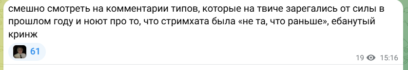 >>6241313 Неожиданно от шинели адекватную реакцию услышать, кстати. С ее то заскоками она вполне могла сказать типо не ну тати тоже не святая да. Там братишкин же ещё про крис в комментариях тик тока что-то срал. Тоже, наверное, сидит хихикает сейчас.