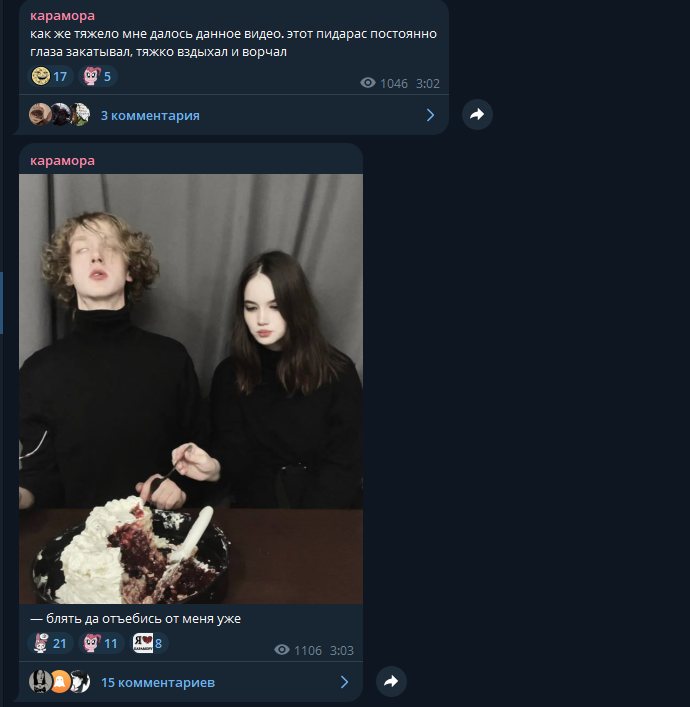 >>6248188 >он хотел макнуть меня ебальником в миску >вставка из ролика с этой фразой >ЭТОГО НЕ БЫЛО >он поддерживал травлю внешности >вставка лайкнтуых им негативных комментариев про ее внешность >Я ЛАЙКАЮ ВСЕ КОММЕНТАРИИ >скрин, на котором видно, что не все
