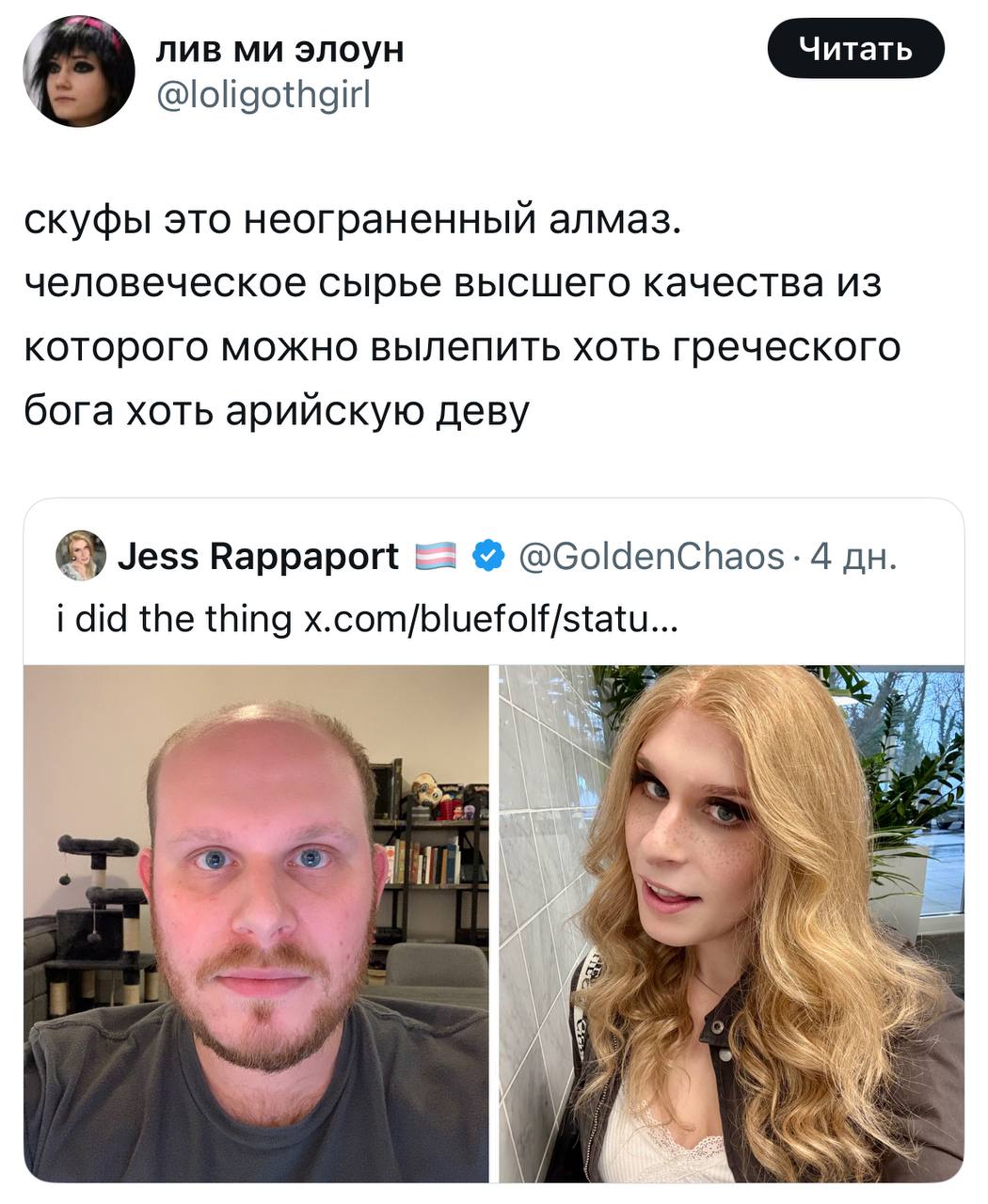 >>6248777 Мне даже на самом деле неловко, потому что там 2 из скринов это я пишу довольно хвалебные посты её "личному бренду" так сказать. Ну мне рил такая хуйня интересна, у меня бы даже в самые ликвидные годы на прайме своей внешки не получилось бы такой "образ главного героя" создать. Реально пофигу что там позерство, патологическая ложь, фильтры, ракурсы, изимод или хз что, да, кажется что её образ это реально типа что-то вроде аниме злодеев в эдите, но дай это всё мне я бы наверное нихуя бы не сделала пикмишила бы вместо этого, подстилалась бы под пополамулю какого-нибудь, пыталась бы каким-нибудь шизоидам что-то доказать пытаясь учить вместо этого погромирование и не смогла бы монетизировать бы это всё нихуя. Просто потому что я долбоебка, а она нет