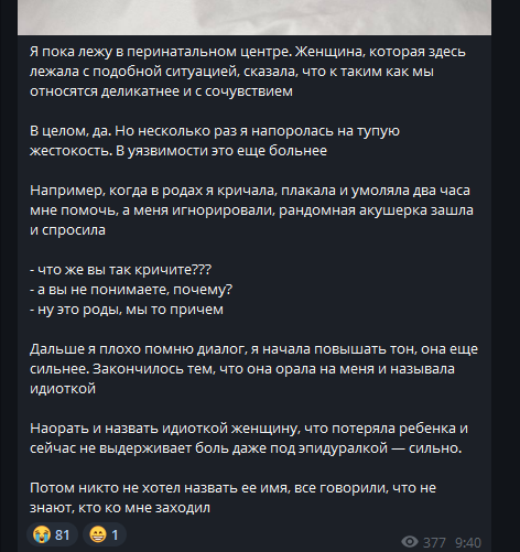 >>6249202 >все эти сотрудники родильных Не только в родильных. Мне уже кажется, что большинство врачей кончи, но кто-то скрывает, а кто-то нет. В родильных просто самый пиздец происходит, а так они ко всем пациентам как к мясу относятся как будто.
