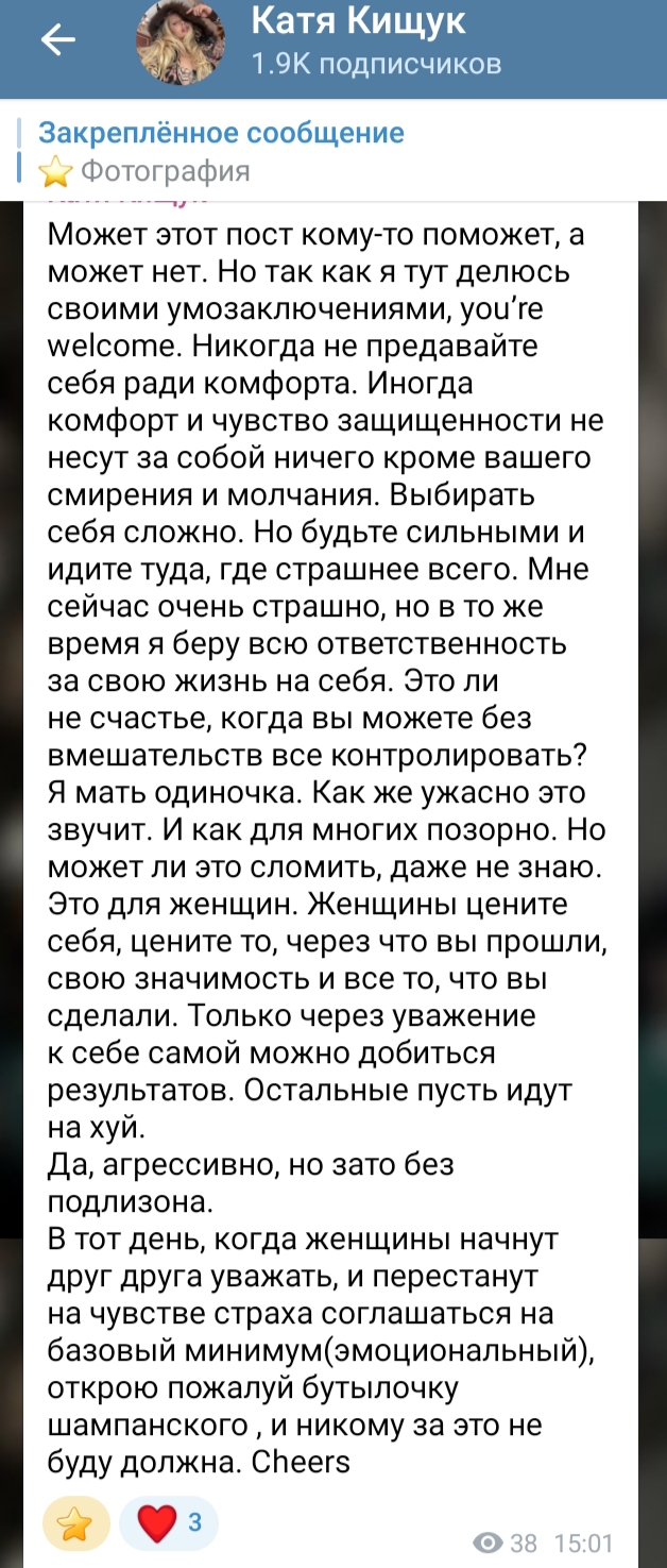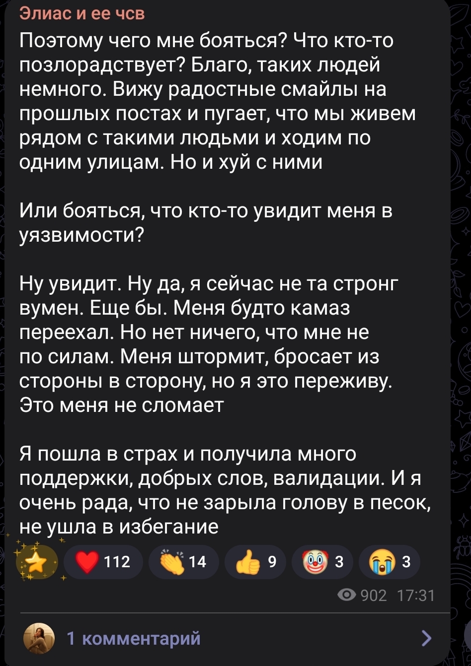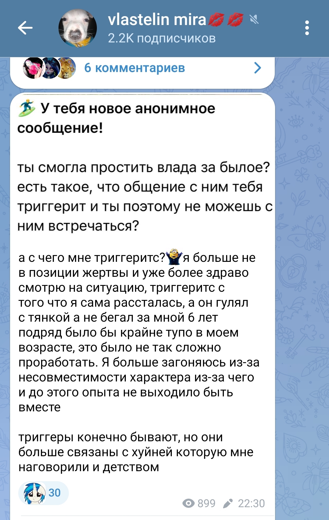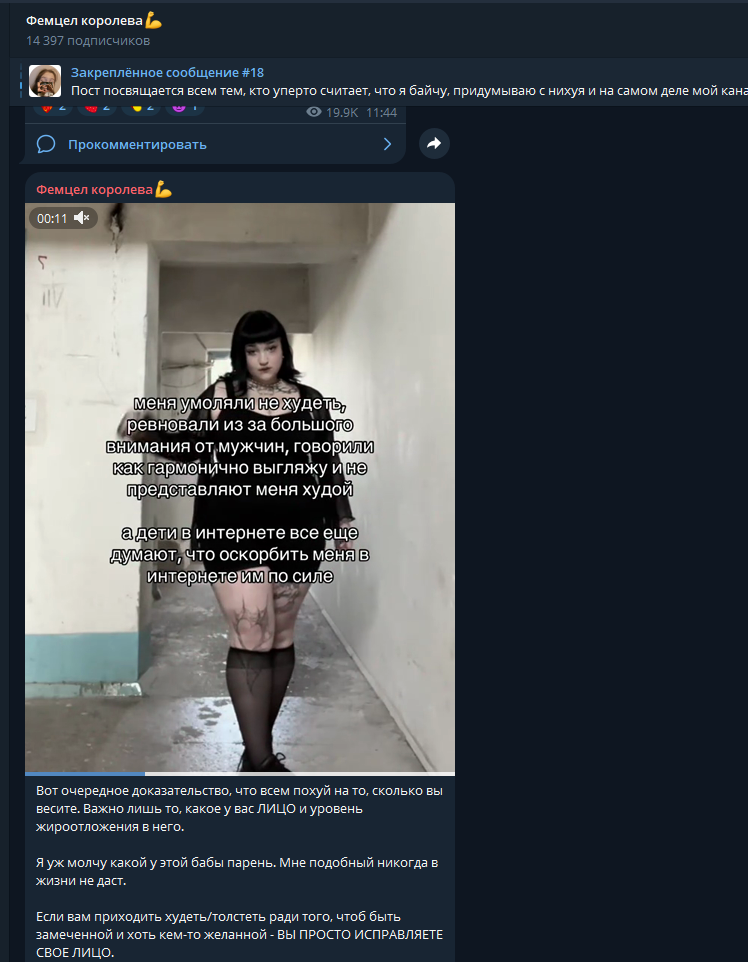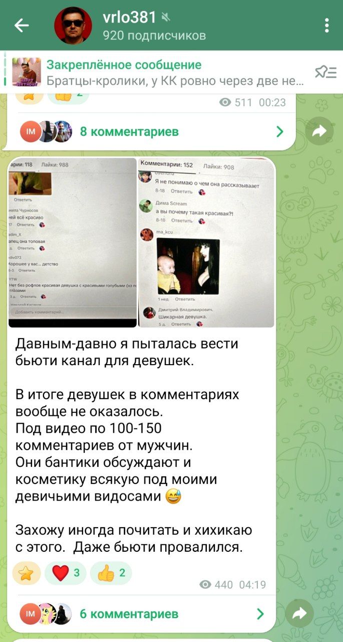 Шо-то вы вспомнили про фемцел-королеву, и я решила почекать как она поживает. 15к уже почти у нее. Кстати, там интересная стори про тян-подписчицы, которая 3кк потратила на операции лица, с ее слов все очень сильно изменилось.