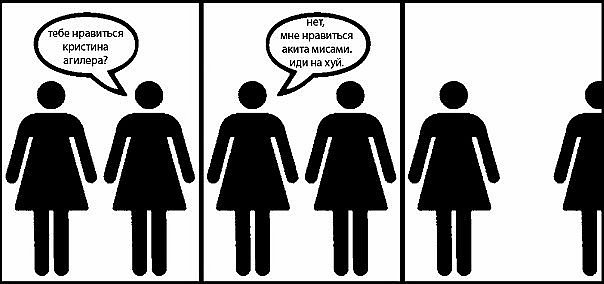 Опять ты, любитель протоселовых? Ко-ко-ко, место тян на кухне, и сейчас я вам это докажу. А ниже вангую кучу постов от странных девушек, которые еще не приобрели иммунитет к подобным высерам, а теперь стараются показать всю глубину своего ОБВМ. "нет-нет, как ты мог подумать, я читаю" "а я музыку слушаю" "а я три раза в жизни в театр ходила - тепрь я у мамы театралка". А еще зелень не могла не набижать. Вот сейчас полистаю, и наверняка найду нескольких средней толщины, которые утверждают, что вкус у девушек плохой, на основании того, что они девушки, и нескольких озлобленных яойщиц, с пеной у рта этой зелени что-то доказывающих.