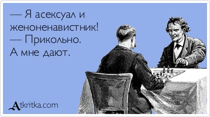 Алсо, в этом итт треде как-то забыли про толпы лесбиянок на западе и мужские профессии вроде инженеров, летчиков, моряков и прочих полярников. Наверное, они все алкаши, быдло, гопота и так далее, да? Конечно, вы замечаете исключительно петухов, которых видно издалека, хипстеров в узкачах, музыкантов, которые своим баритоном пытаются под хреновенькую гитару перепеть Йорка или Беллами, и прочий скам, у которого вся жизненная позиция заключается во внешней демонстрации. А потом ноете, мол, парней нет.