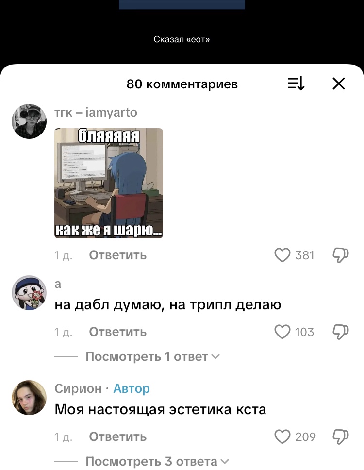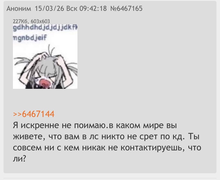 Вообще у меня в тот день просто было плохое настроение и я всех ненавидела хотелось ченить поганое написать, хотя отчасти заслуженно рил за все говно что мне за все время тут понаписали. Жалко, что тут большинство такие озлобленные и даже если меня узнают в нейтральных постах, все равно травля начинается. Иногда просто забываю ну или не хочется думать, или надеешься что эти люди не будут онлайн или ушил с двача.