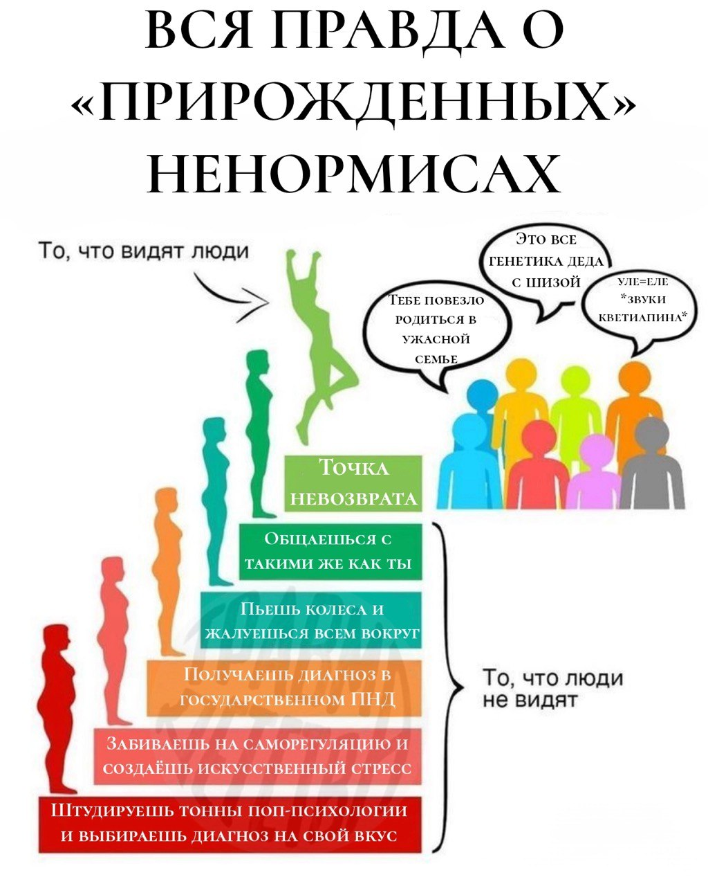 Как же хорошо было жить до окр. Теперь вся моя жизнь заместилась им и подстраивается под него. Пока нормисы думают о своей жизни и проблемах, решают ее, отдыхают, увлекаются чем-то прикалываются чиллят, я каждый день борюсь с какоум-то тупой бессмысленной беспочвенной смешной абсурдной хуйней у себя в голове и всегда плохое настроение, страх, выживание, перерождение, и тяжело что-либо делать вообще. Так завидую нормальным людям. Мне очень плохо.