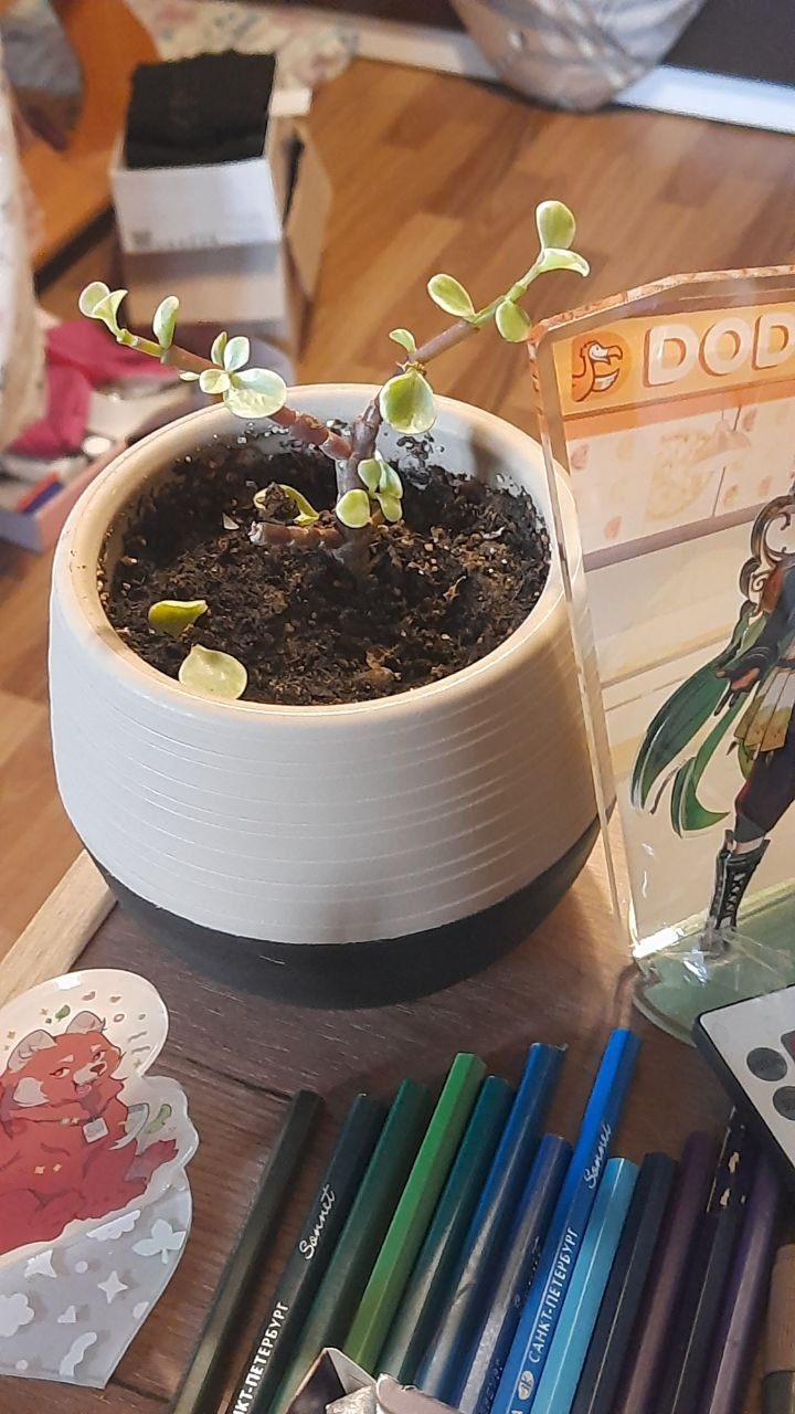 1. два кактуса, не знаю даже как их вид называется, через поиск по картинкам ничего не выдало толкового, один умер, другой вырос - наверное его красителем красным поливали, поэтому теперь шапочка белая. 2. каланхоэ, парень подарил, он вырос, летом ему наиболее хорошо было, сейчас ему очень плохо и я не знаю что с ним делать 3. купила в пятерочке, суккулент, был qr-код, но на всех горшках он не читался, просто по словам в гугле не смогла найти инструкции.