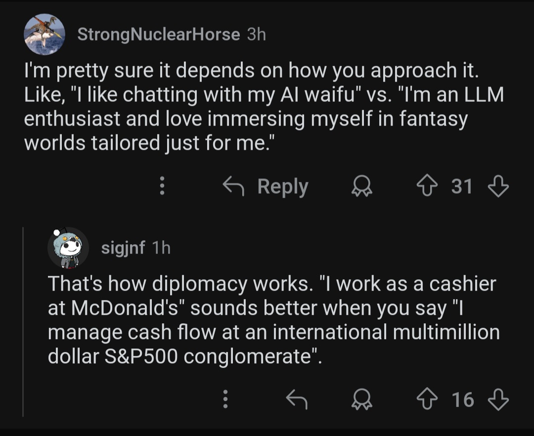 >>6093033 >Из того что выжило - разве что потребление и архивирование в голове тонн разнородного лора, но это исключительно в порядке удовлетворения собственного любопытства, люблю разбираться как что работает в разных сеттингах, хоть мне это ничего и не дает. Попробуй начать писать фанфики, а там может и до собственной книги руки дойдут.