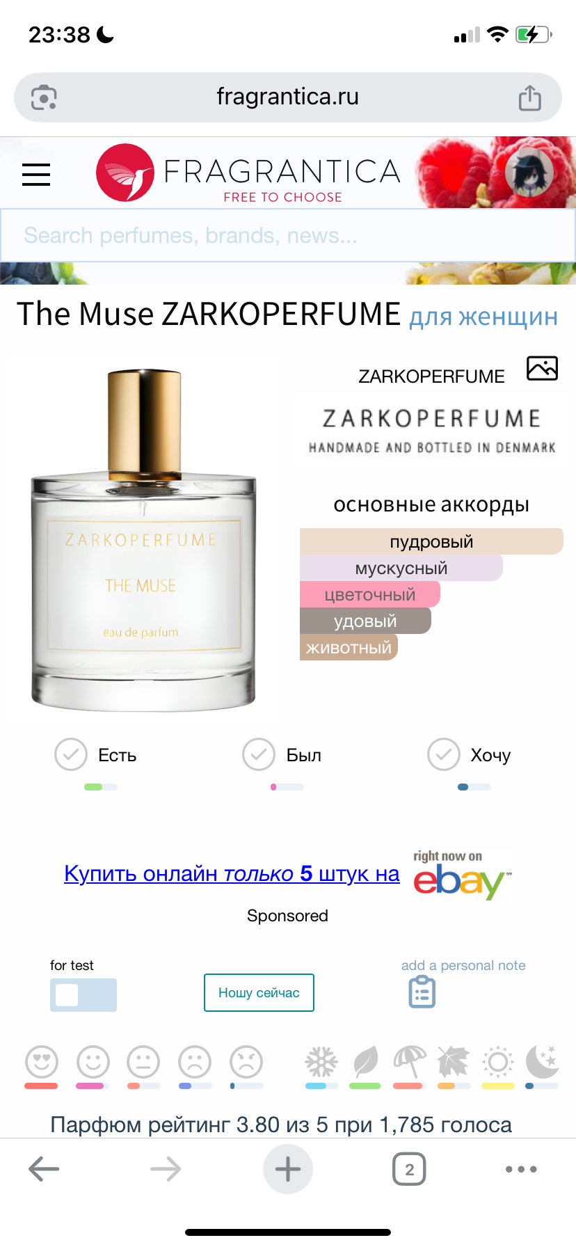 Вспомнила, что мне в заказ с рандеву положили 2 пробника от их этого бренда Angeline, со скуки напшикала руку пробником с казалось бы абсолютно безобидным названием Berry kiss. Ну, думаю, чё там ягодки какие-то наверное, что может случиться? А случился полный сблёв блять и ароматное покушение на мою жизнь. Очень мощный приторный запах какого-то пригоревшего варенья, вылившегося на противень из пирога, только помножить ещё на тысячу. В пирамиде ревень, груша, роза и мускус, я даже в теории не представляю, чё они хотели получить, но получилось очень хуёво. 3 раза уже руку помыла и проветрила комнату, но ничего не помогает, первый раз такое, чтоб мне аромат настолько не понравился.