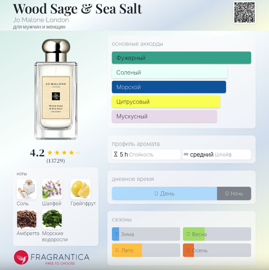 >>6359246 Обменяла сегодня свой отливант Chanel Coco Mademoiselle >>6330170 на отливант Jo Malone Wood Sage & Sea Salt. Первый раз попробовала концентрацию одеколон, на старте - тупо спирт, ну и стойкость печальная - не больше 3 часов. Но всё равно очень вкусно! На фоне современных диких сочетаний и вырвиглазных шлейфов, это такой спокойный свежий воздух. Где-то рядом море, но ты на сухом пляже с травами и камнями. Полноразмерный брать - оверпрайс жуткий, но направление для себя запомню, буду подбирать что-то похожее