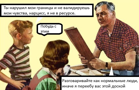 Да вот пример простой, тезис психологов никто никому ничего не должен. Допустим это так. Жизнь только по-другому устроена. Слышу часто "мужик не должен тебе ничего, он такой же человек как и ты, он не должен больше зарабатывать". Слово должен тут неуместно, заставить взрослого никто не может и не будет. Но какого хуя мы упускаем тот факт, что мужчине проще дается карьера, что мужчин легче берут на работу, что они в целом более конкурентноспособны? Почему мы забыли, что если семья предполагает ребенка, то рожать его все равно женщине. Все равно ей тратить ресурсы организма и время. Психолог и на это может сказать, женщина ничего не должна. Может поговорить с мужем и он ей поможет. Внимание, поможет! И вот эти абстракции психологические меня и настораживают. Да, хорошо все на вашей бумажке и в лабораторных/кабинетных условиях. Какого хуя мы игнорируем реальность? Я уже молчу про тех шизух, что рассказывают, вы бедные потому что не проработали деньги.