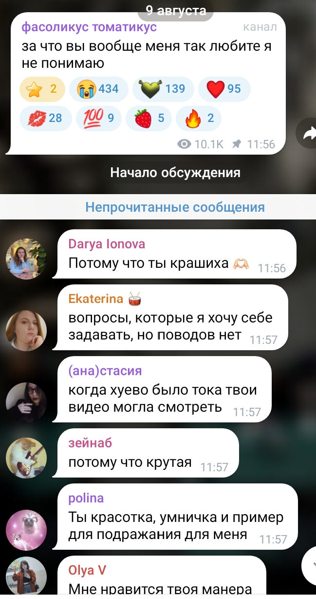На ют у нее есть ссылка на почту, мне кажется, лучше туда. Сотрудничество/ РЕКЛАМА: [email protected] Лучше, если напишет кто-то, кто ее более-менее смотрит и плюс-минус знает, как ее зацепить.