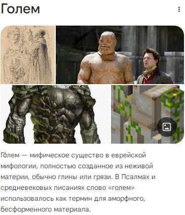 >>6247863 А я думала голем потому что состоит из патриархальных тейков , поэтмоу патриархальный голем типа. Ну как земляной голем, только патриархальный. >>6247867 Мне вот тоже интересно откуда я его знаю и где в первый раз услышала. Я помню в детстве брала в бибилиотеке книгу Голем, меня пугала она. Мб тогда узнала. Но будто до этого я слышала его. Големы которые призываются. Может в сакреде или диабло. Хз. В майнкрафт я тогда еще не играла. Ну голем пугает меян в общем... Ужас.