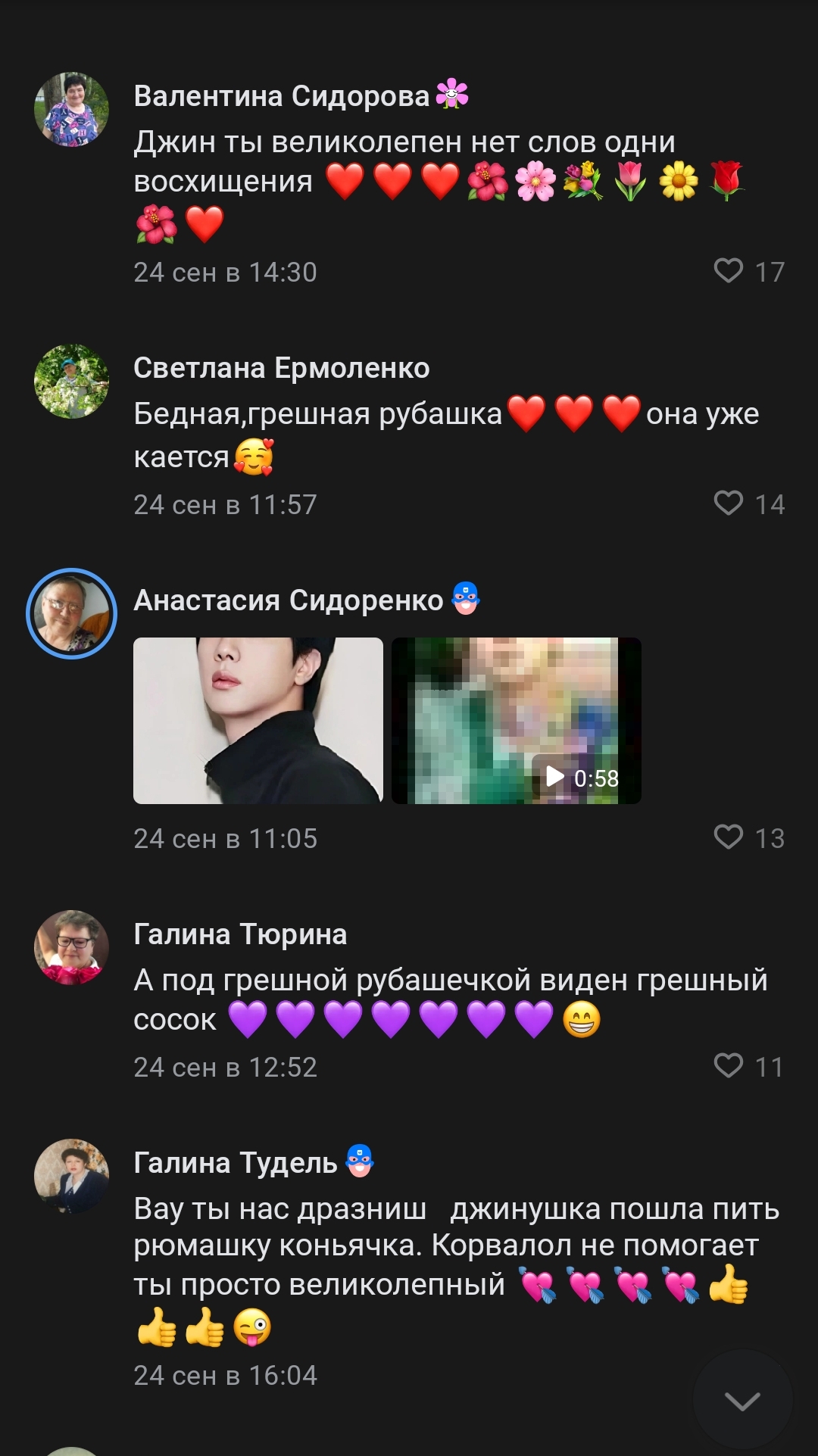 >>6297003 >>6297006 Да ладно вам, просто забавно, я без негатива Они там обычно на страницах ватсаповские открытки, внуков и рецепты постят, а сами хорни комментарии в бтс пабликах оставляют хехе